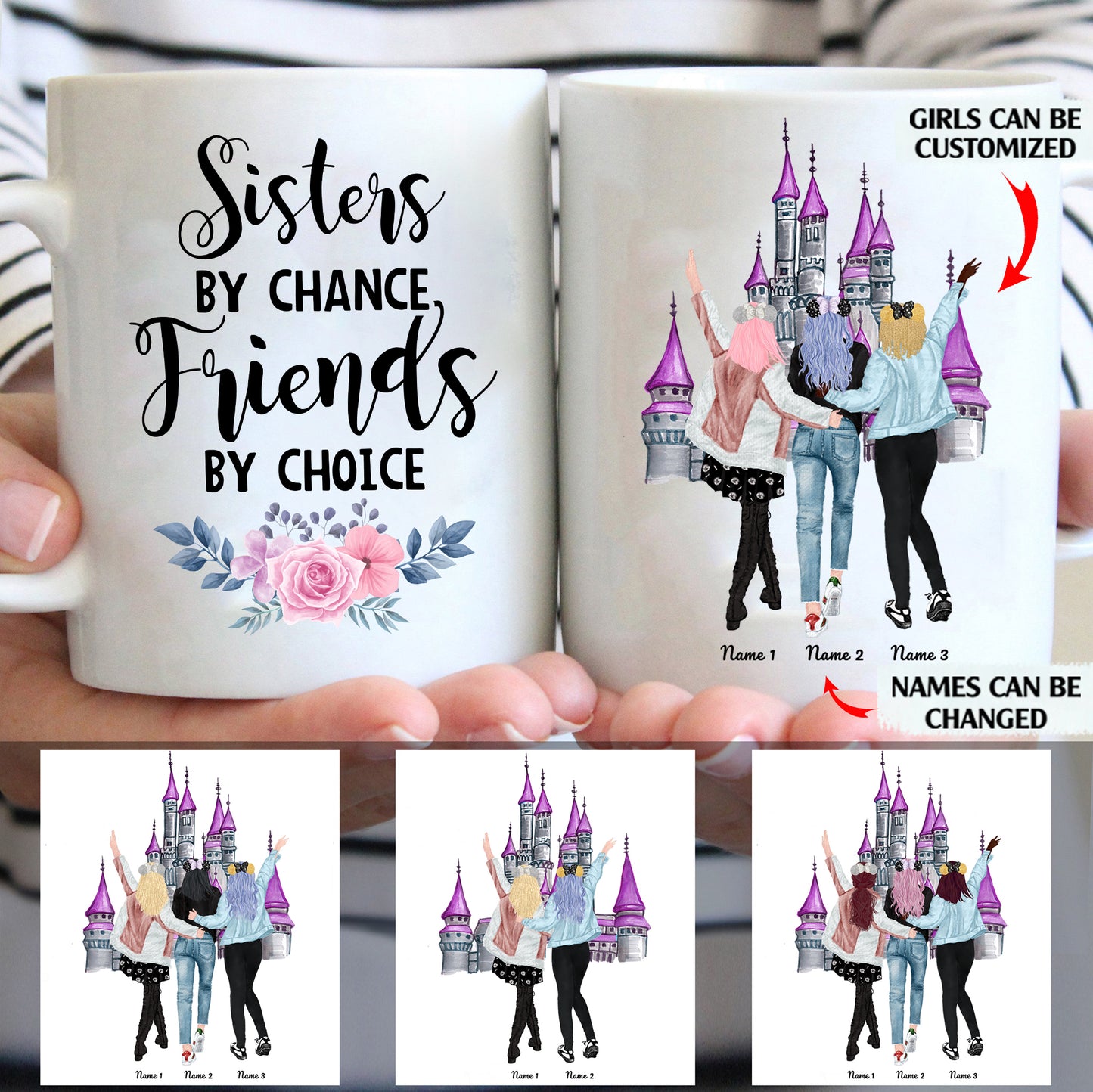 Sisters by chance, friends by choice personalised gift customized mug coffee mugs gifts custom christmas mugs