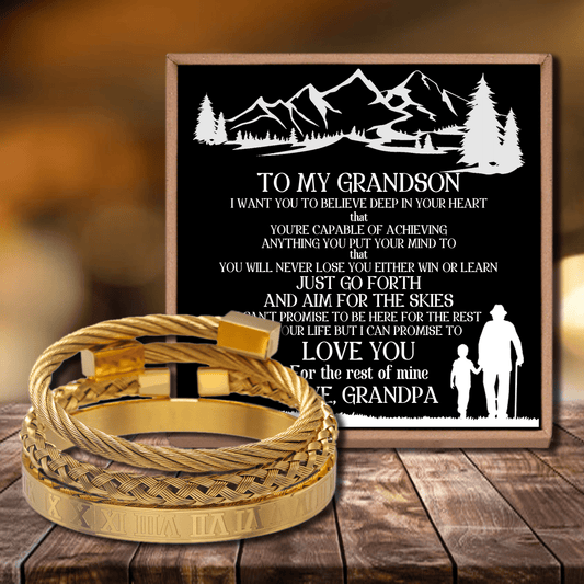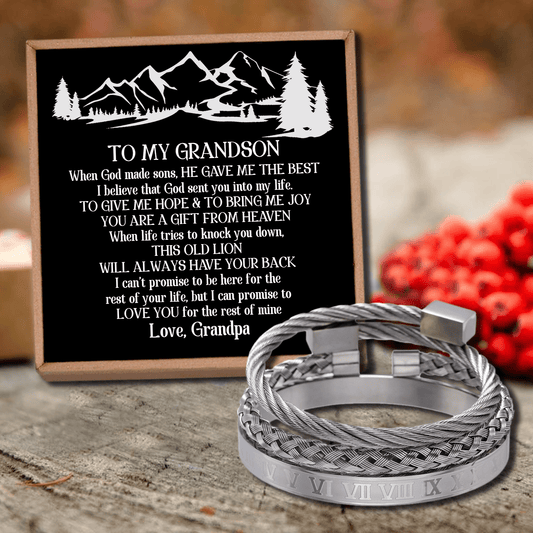 Grandpa To Grandson - You Will Never Lose Roman Numeral Bracelet Set