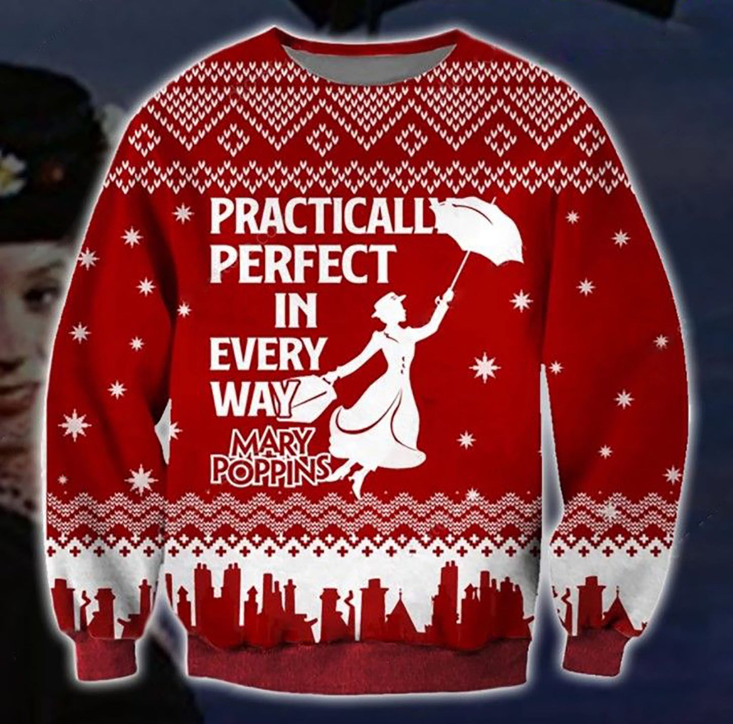 Mary Poppins 3D Geansaí Gránna Nollag, Geansaí Gránna Nollag, Bronntanas Nollag, Bronntanas Nollag 2024