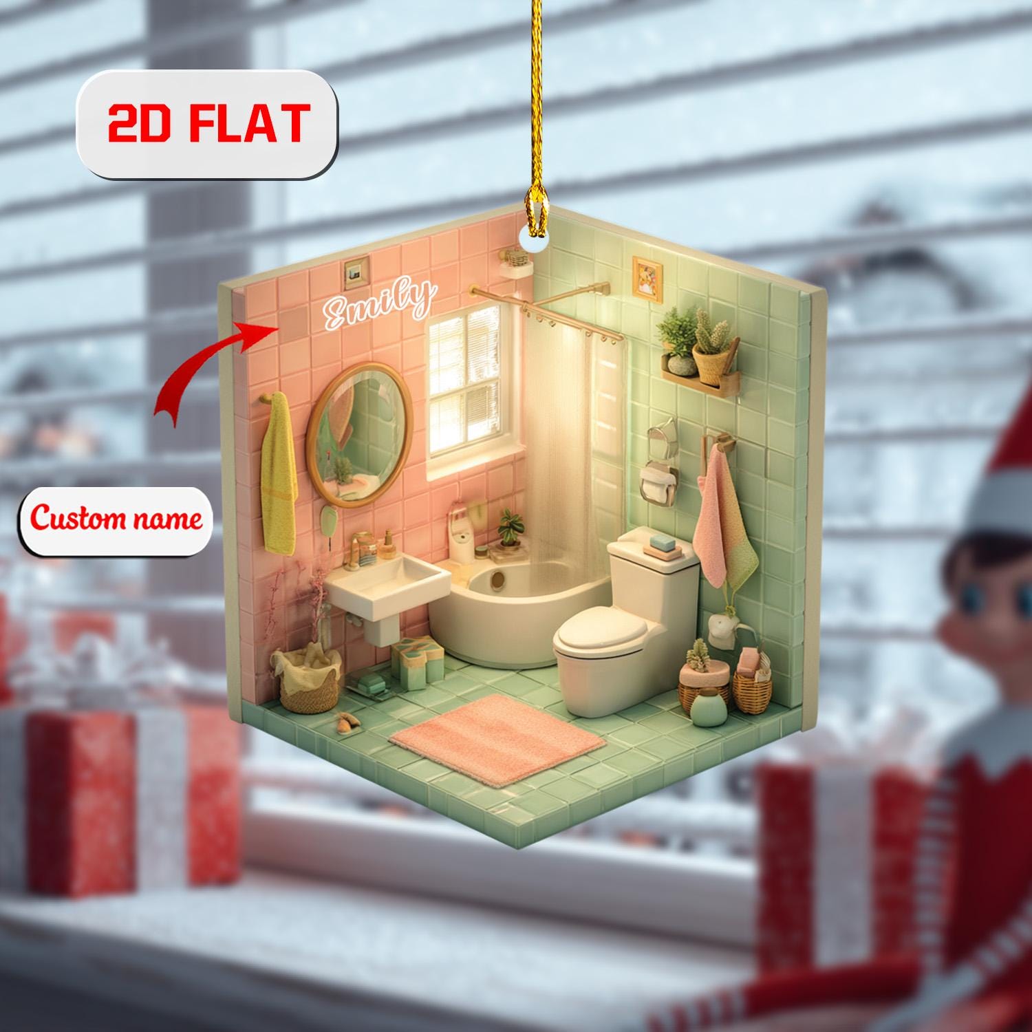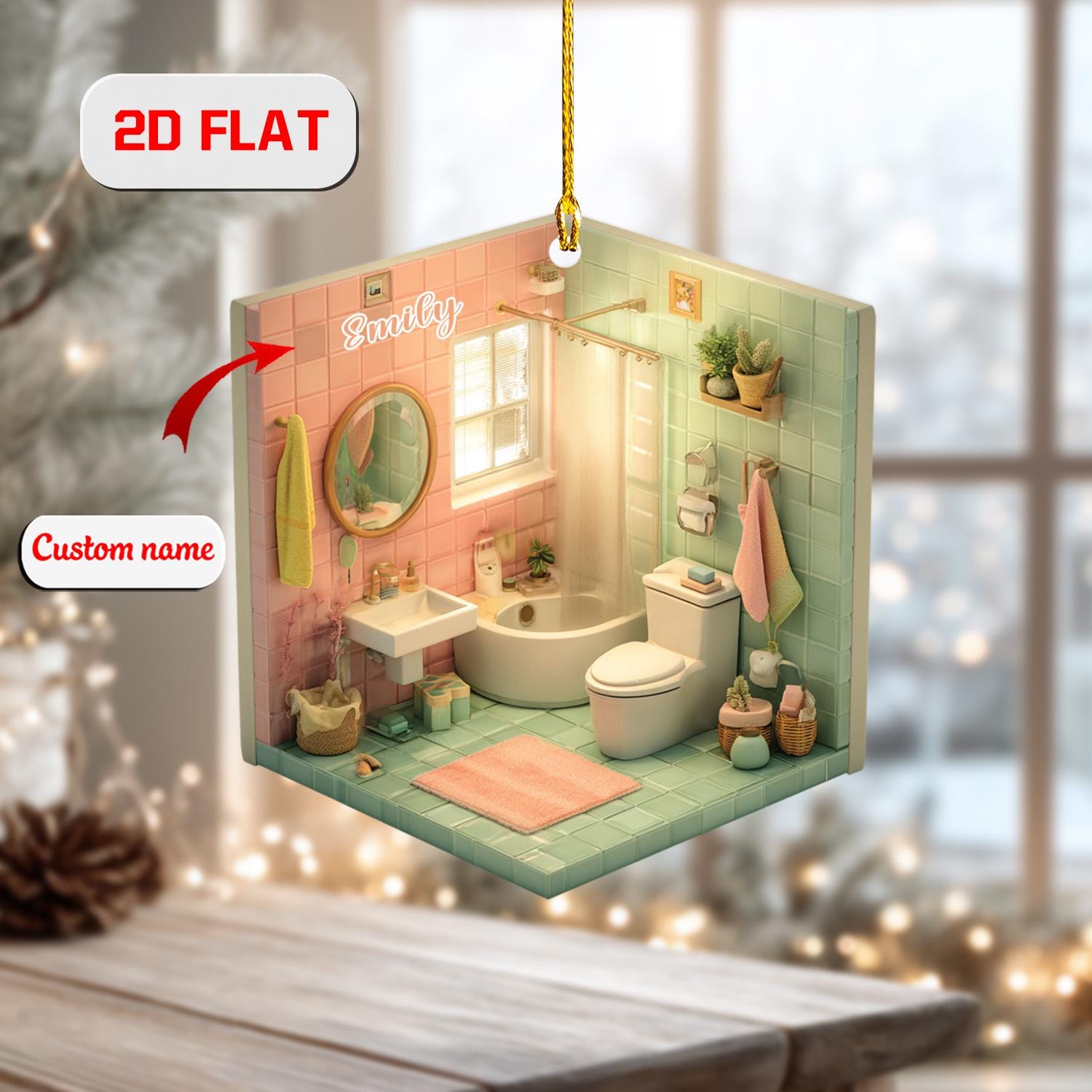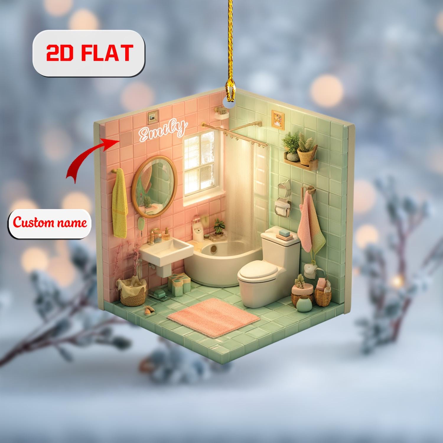 2D Custom Bathroom Ornament, Personalized Funny Christmas Ornament with Name, Unique Home Decor Gift, Housewarming Ornament