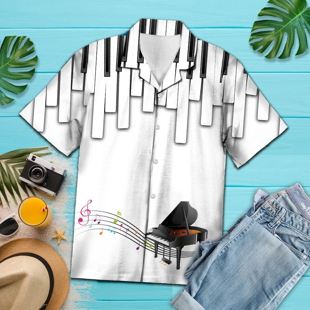 Méarchláir Pianó 3d Bain sult as an Patrún Rhythm Léine Haváís, Bronntanas Léine Haváíais, Bronntanas Nollag