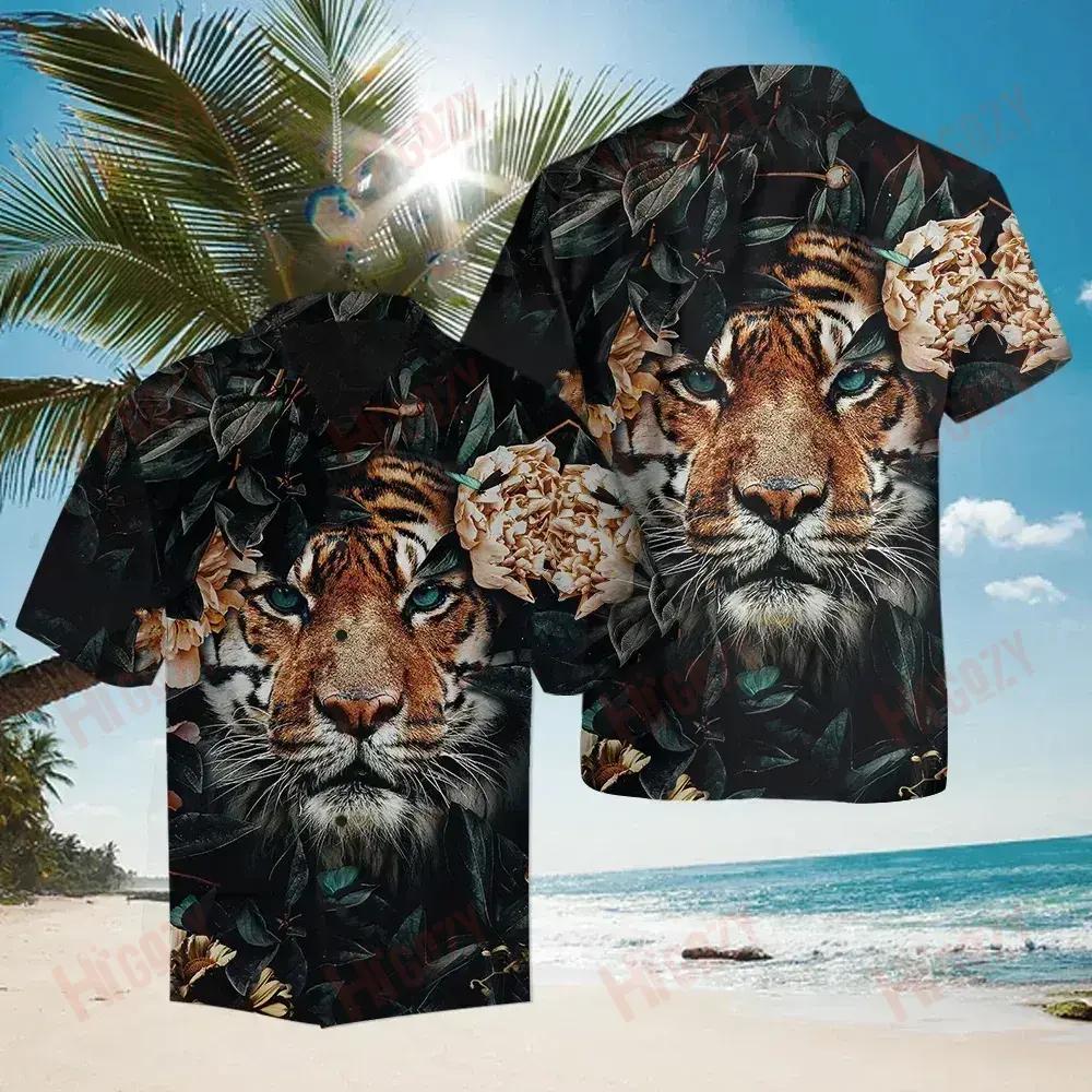 Léine Gearr Muinchille Bláthanna Tíogair 3D Muinchille Farraige Léinte Crazy Haváís Patrún Léine Haváíais, Bronntanas Léine Haváís, Bronntanas Nollag