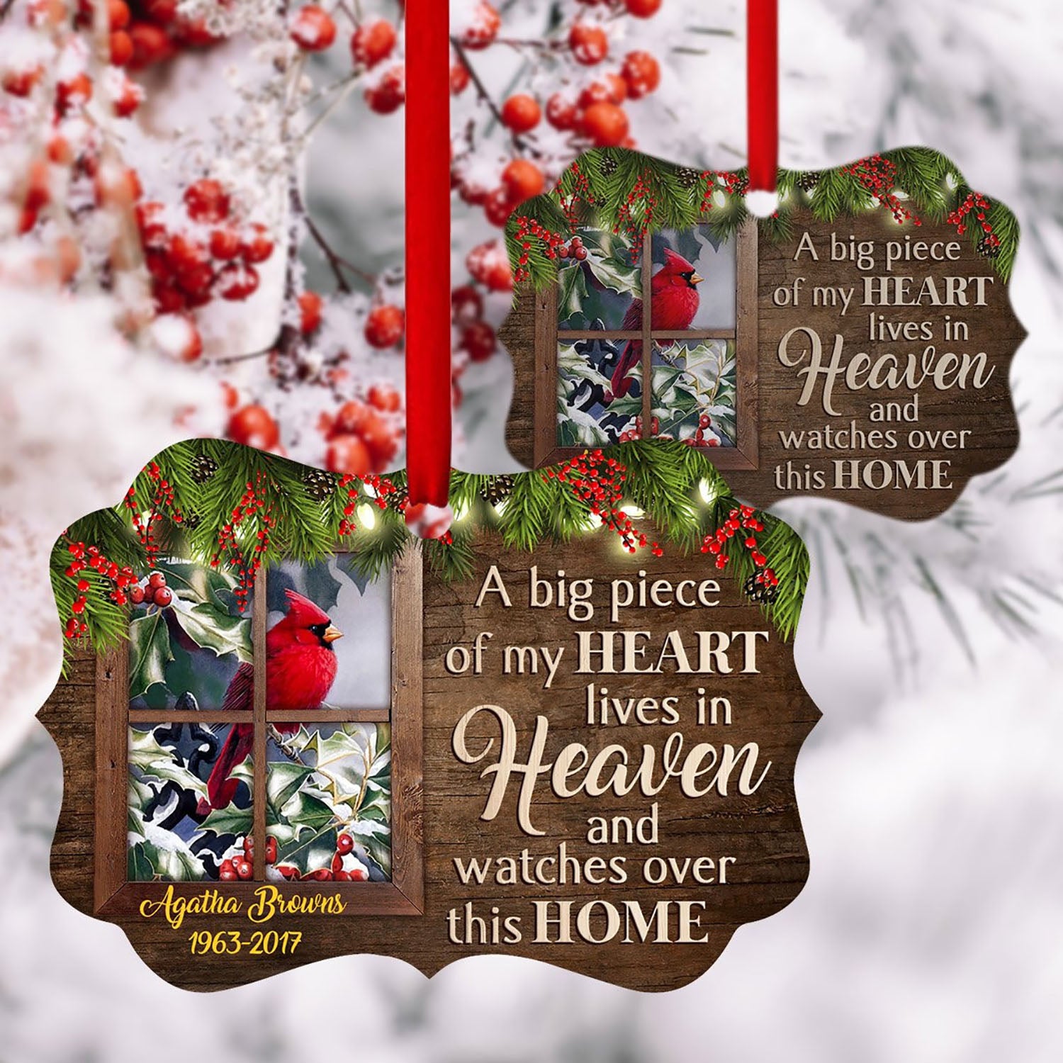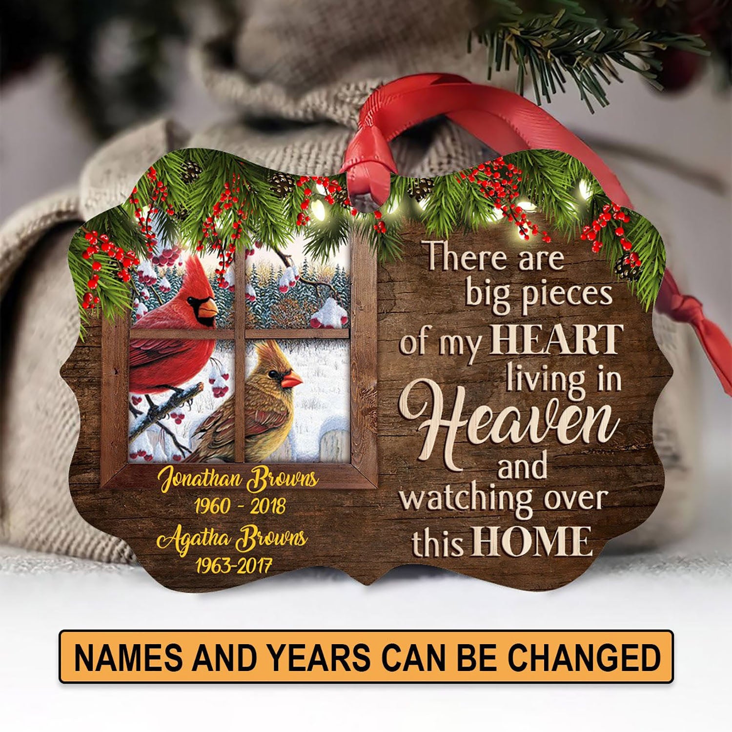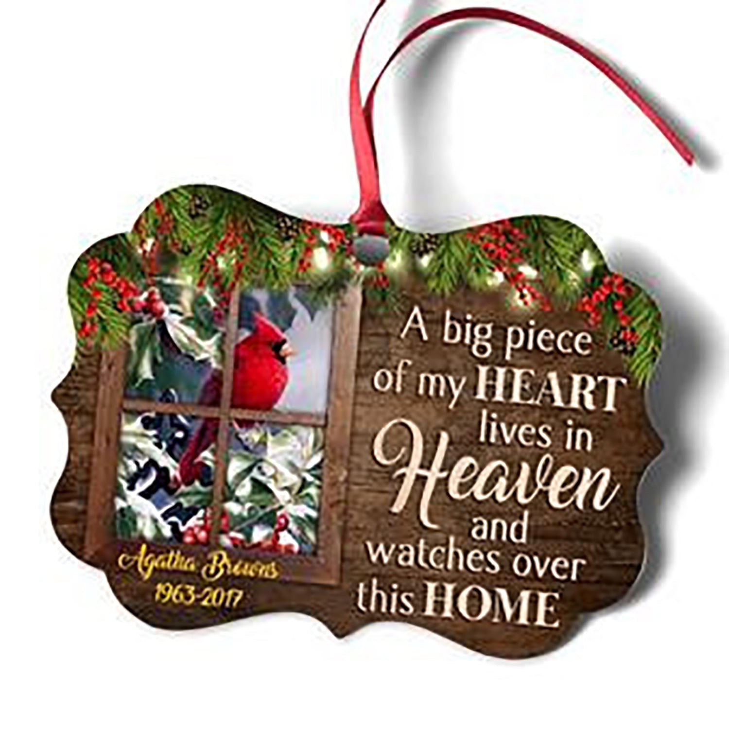 Tá Píosa Mór Mo Chroí ina chónaí ar neamh - Cuimhneachán Pearsanta Cairdinéal Éan Ornáide Alúmanam, Bronntanas Nollag, Maisiú Nollag