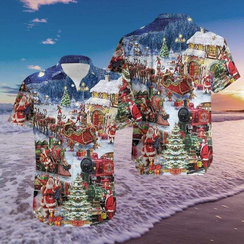 Traein ar Teacht Abhaile Daidí na Nollag Dearadh Seanré Stíl Léine Haváís, Bronntanas Léine Haváí, Bronntanas Nollag