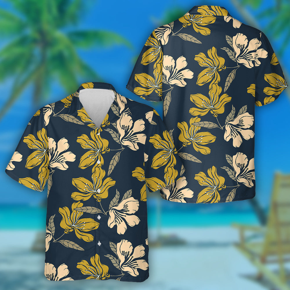Bláthanna Elegance Teibí Patrún Lámh-tharraingthe Téama Cabhlach Léine Haváís, Bronntanas Léine Haváís, Bronntanas Nollag