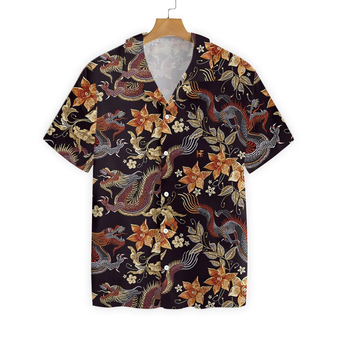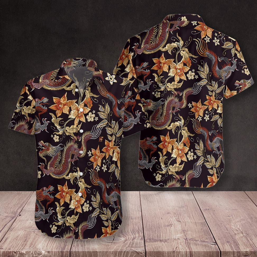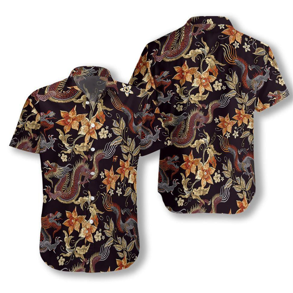 Léine Haváí Ornáideach Abstract Floral And Dragon, Bronntanas Léine Haváíais, Bronntanas Nollag