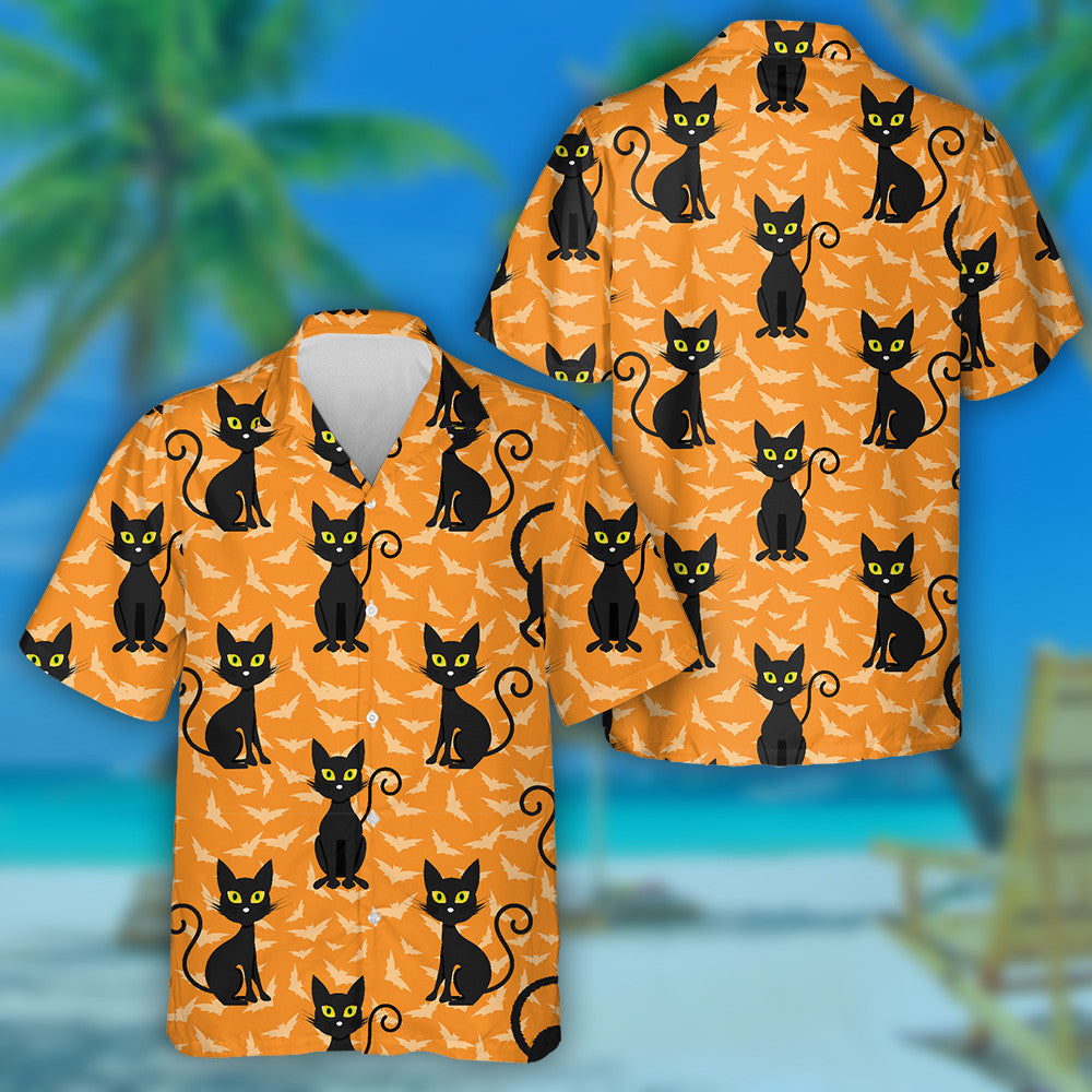 Teibí Stíl Oíche Shamhna Cat Le Sciatháin Leathair Léine Haváís, Bronntanas Léine Haváís, Bronntanas Nollag