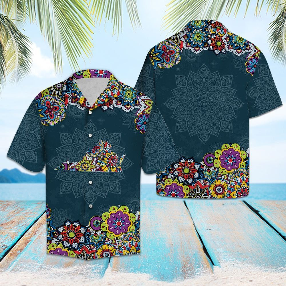 Léarscáil Teibí As Virginia Mandala Patrún Patchwork Flower Léine Haváís, Bronntanas Léine Haváíais, Bronntanas Nollag
