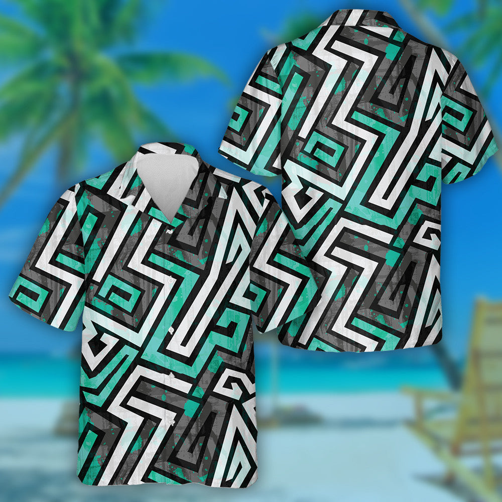 Abstract Uirbeach Glas Bán Maze Maze Splashes Céimseata Camo Léine Haváís, Bronntanas Léine Haváís, Bronntanas Nollag