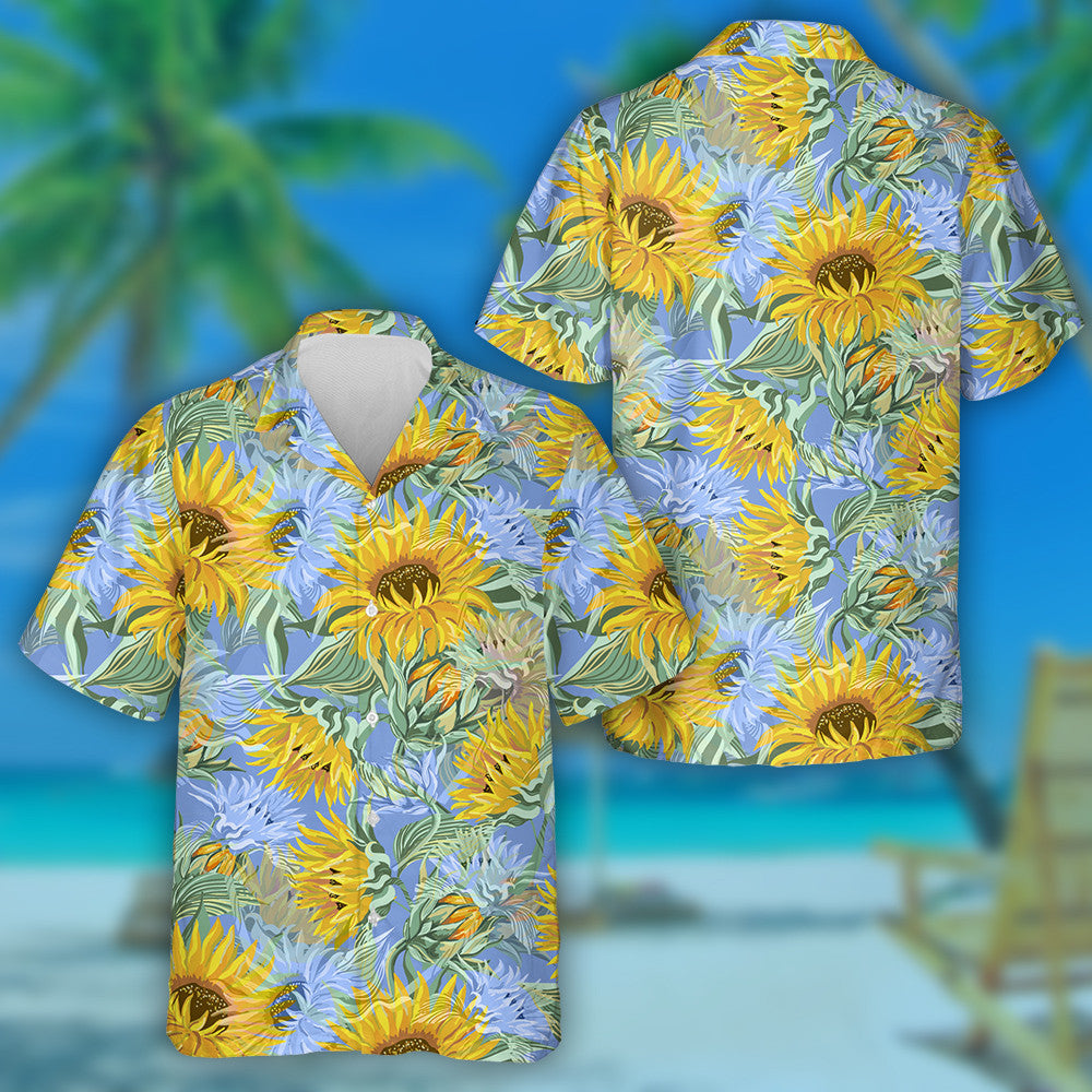 Péinteáil Aicrileach Patrún Lusanna Gréine Aqua Gorm Agus Buí Léine Haváís, Bronntanas Léine Haváíais, Bronntanas Nollag