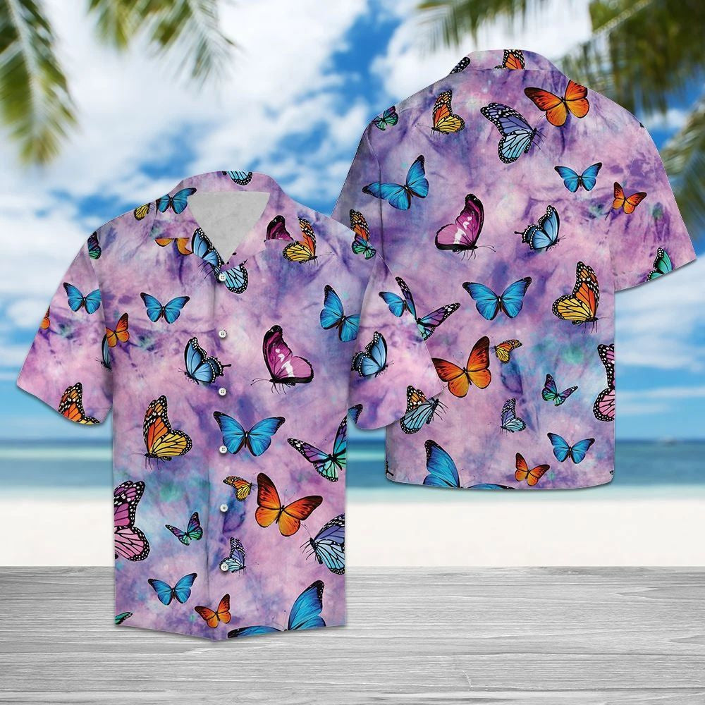 Stíl Féileacán Dathúil Aeistéitiúil Léine Haváí ar Théamaí Corcra Bláth, Bronntanas Léine Haváíais, Bronntanas Nollag