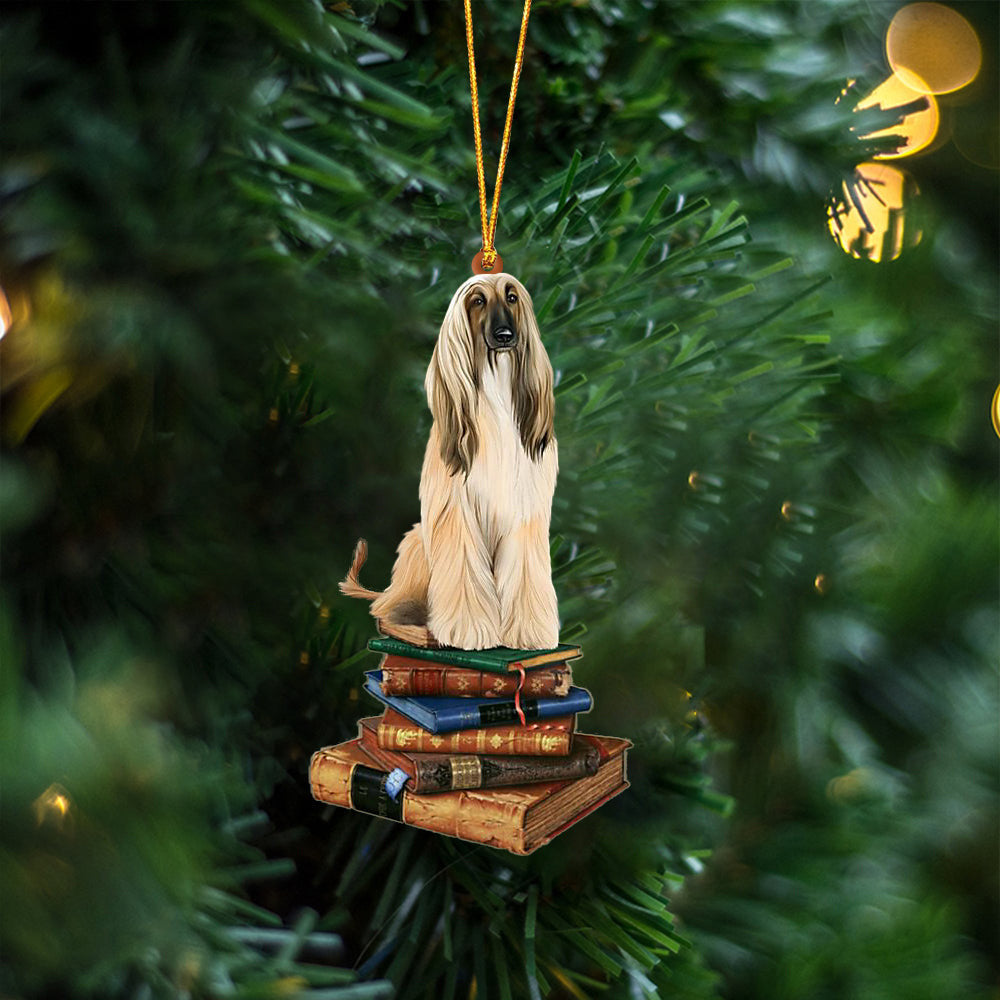 Cú na hAfganastáine Suí Ar An Leabhar Dhá thaobh Ornáid Crochta Plaisteach Nollag, Bronntanas Ornáide Nollag, Bronntanas Nollag