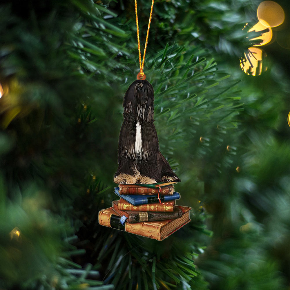 Cú na hAfganastáine2-Suigh Ar an Leabhar Dhá thaobh Ornáid Crochta Plaisteach Nollag, Bronntanas Nollag, Maisiú Nollag