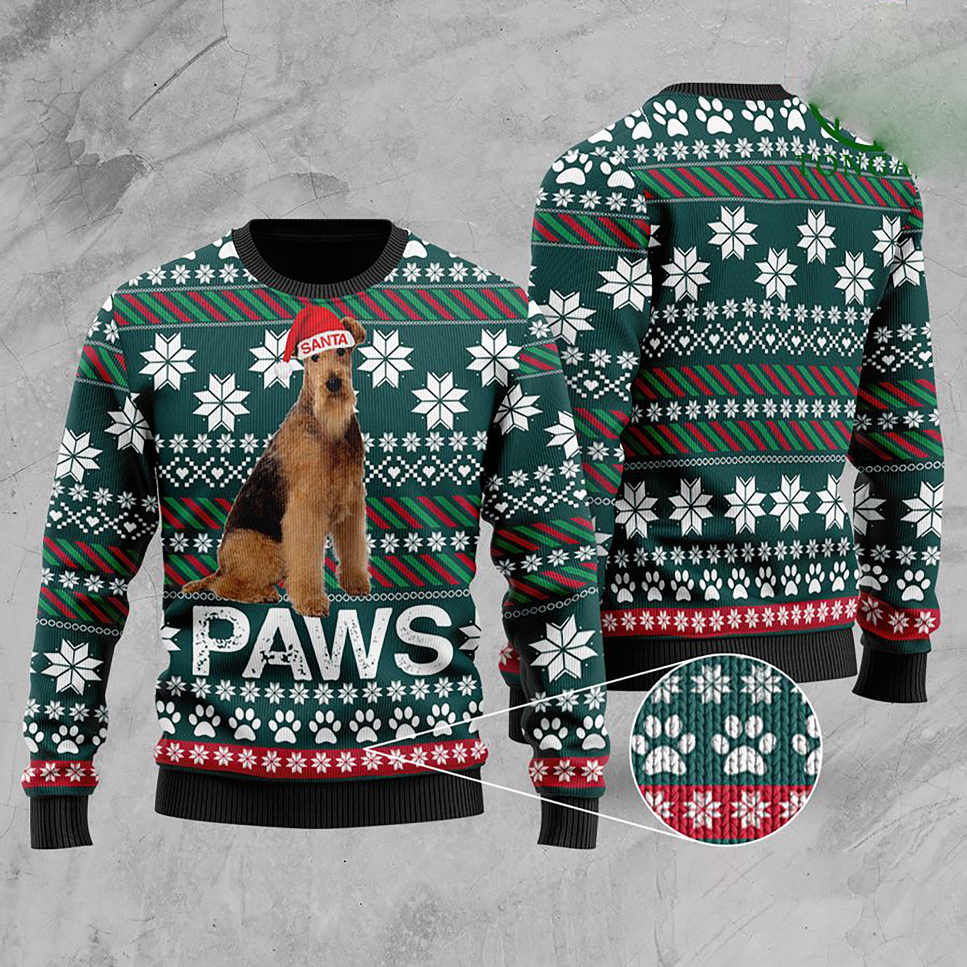 Bhrocaire Airedale Santa Clóbhuailte Geansaí Gránna Nollag, Geansaí Gránna Nollag, Bronntanas Nollag, Bronntanas Nollag 2024