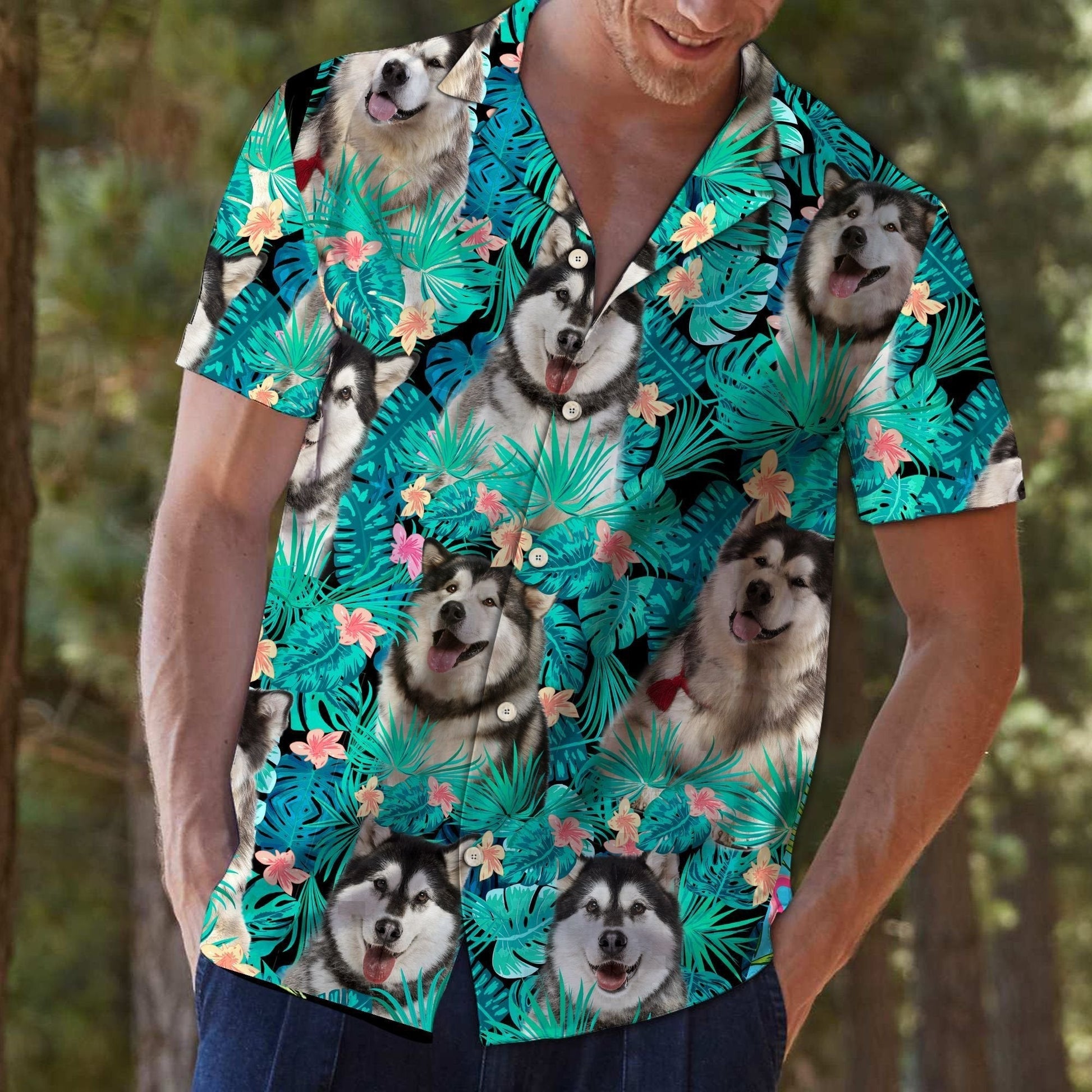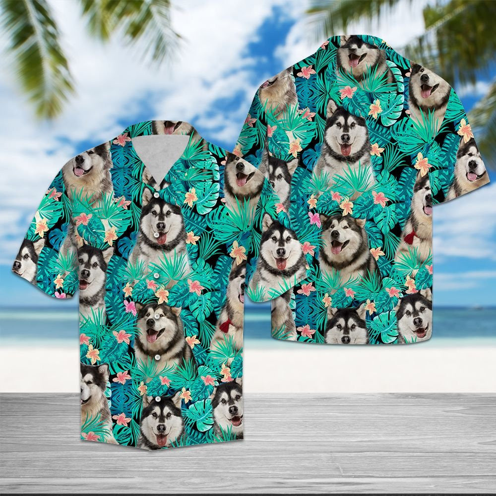 Malamute Alaskan Le Bláthanna Agus Duilleoga Trópaiceacha Dearadh Léine Haváí, Bronntanas Léine Haváís, Bronntanas Nollag