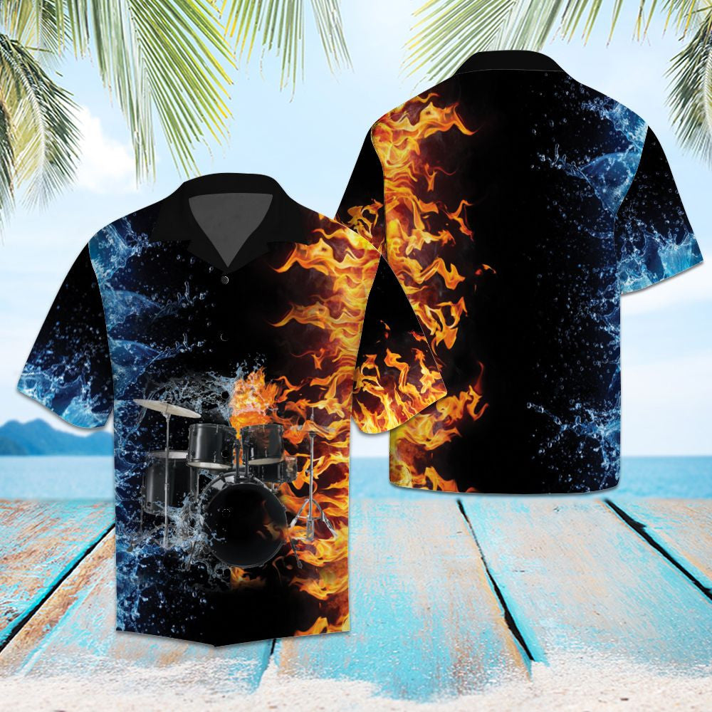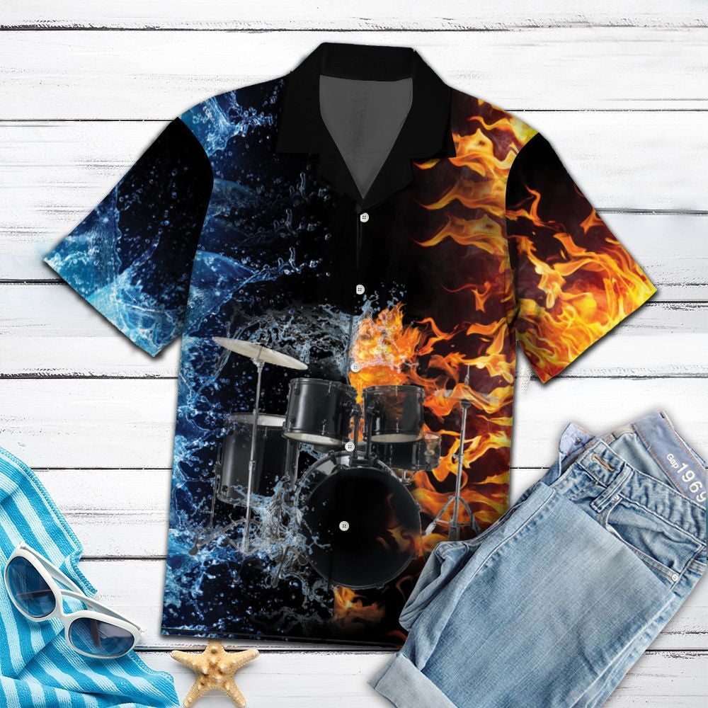Drumaí Iontach Le Uisce Agus Tine Léine Haváí le Téama Stíl Rock, Bronntanas Léine Haváíais, Bronntanas Nollag