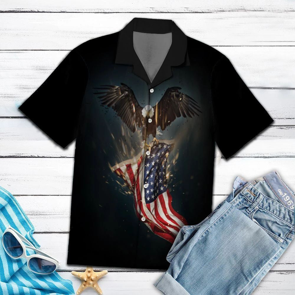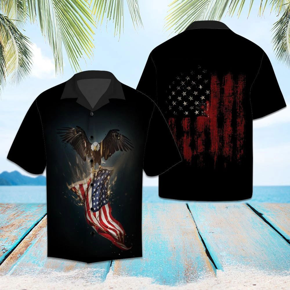 Amazing Eagle Le Meiriceá Bratach Patrún Péinteáil Léine Haváís, Bronntanas Léine Haváís, Bronntanas Nollag
