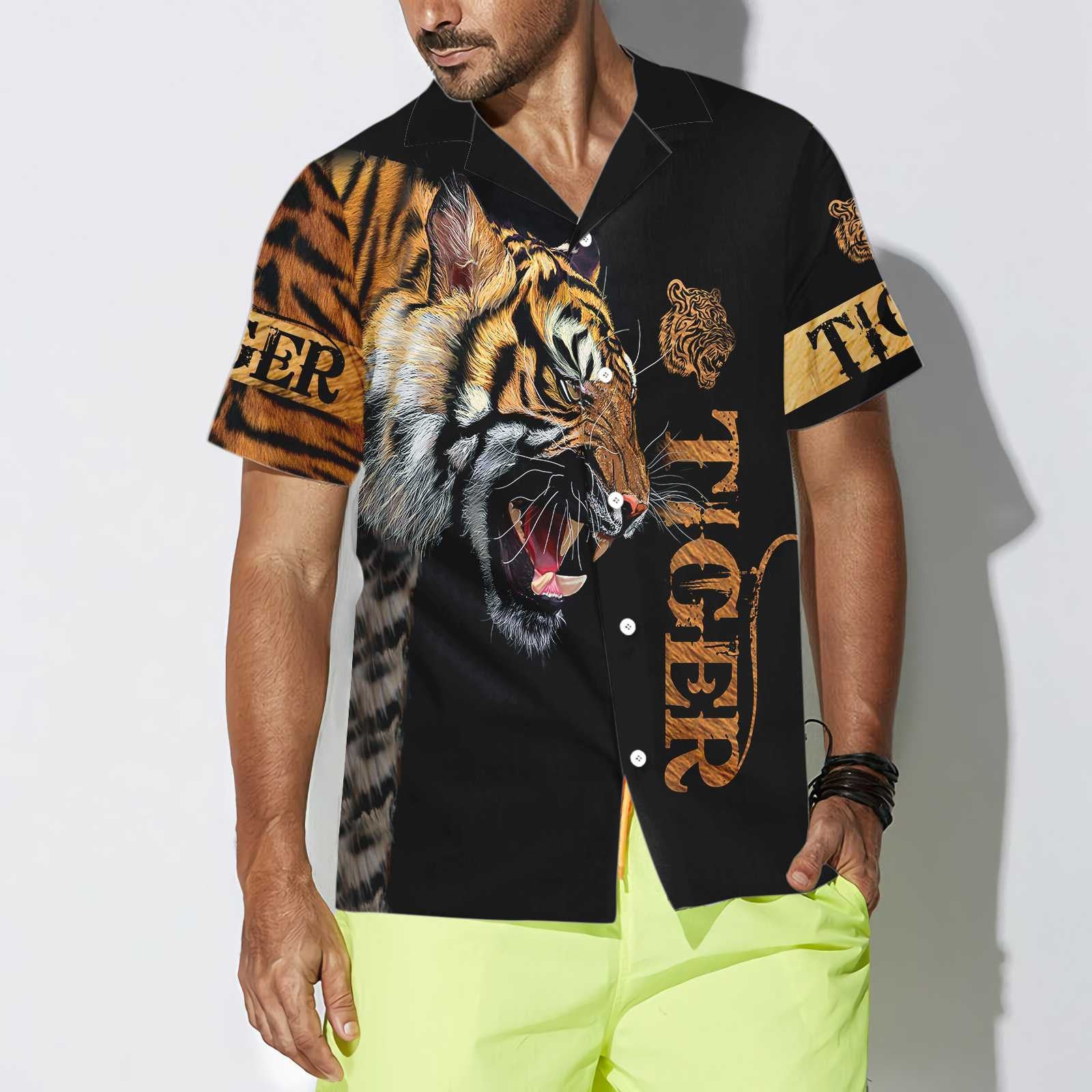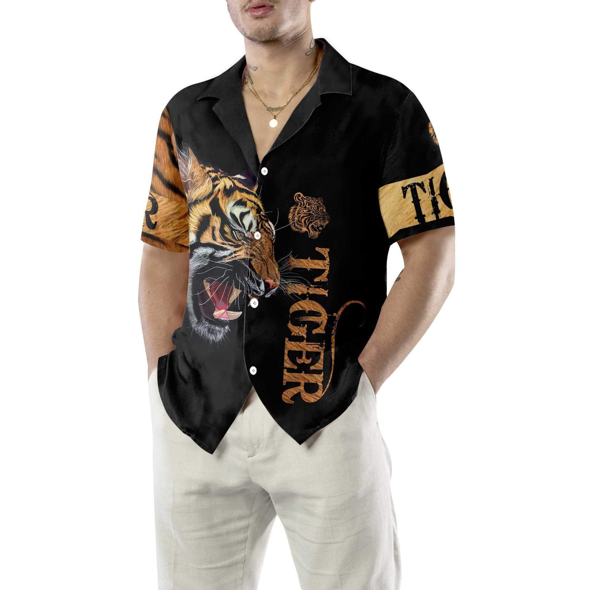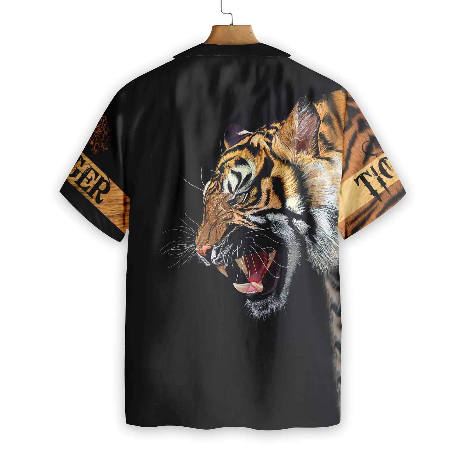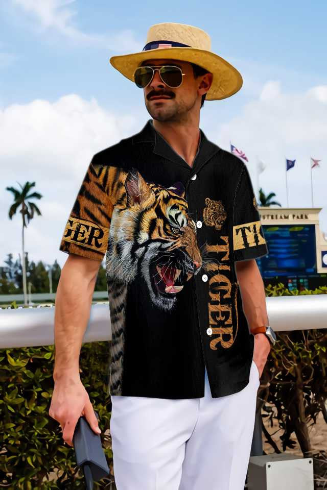 Craiceann Tíogair Feargach Ar Chúlra Dubh Dearadh Léine Haváís, Bronntanas Léine Haváíais, Bronntanas Nollag