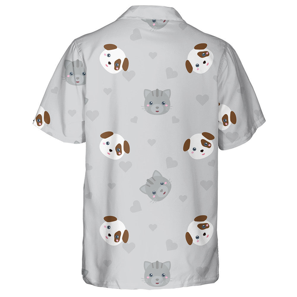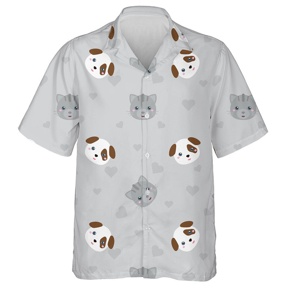 Cat agus Madra Ainmhithe ar Chúlra Liath Le Léine Haváise Grá, Bronntanas Léine Haváís, Bronntanas Nollag