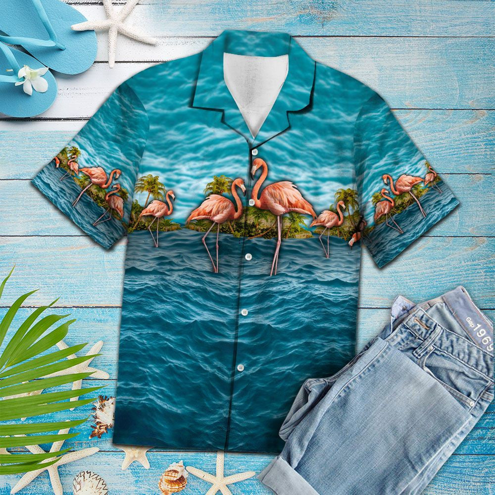 Achomharc Grúpa Flamingo Patrún Deep Blue Ocean Léine Haváís, Bronntanas Léine haváíais, Bronntanas Nollag