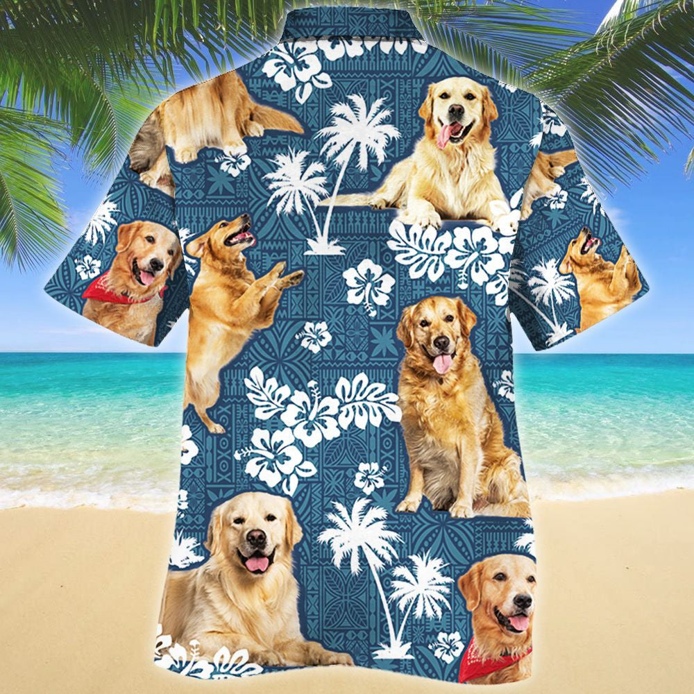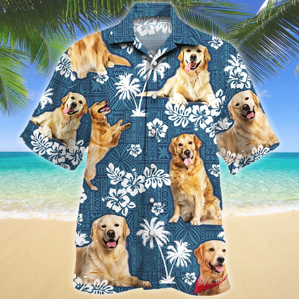 Dearadh Tarraingteach Madra Retriever Órga Patrún Gorm treibhe Léine Haváís, Bronntanas Léine Haváís, Bronntanas Nollag
