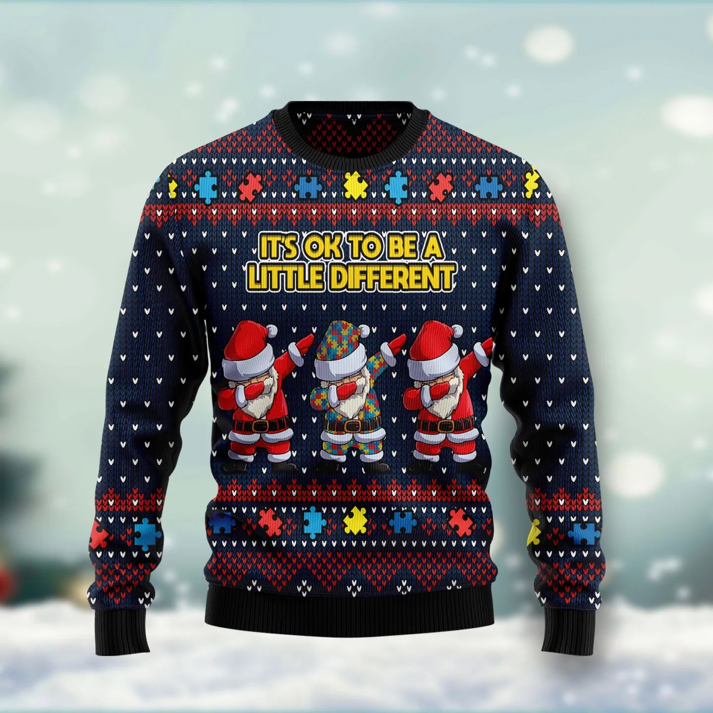 Feasacht ar Uathachas Clásail greannmhar Daidí Tá sé ceart go leor a bheith beagán difriúil Geansaí Nollag Gránna Tléine Nollag Éadaí Cochaillín, Geansaí Gránna Nollag, Bronntanas Nollag, Bronntanas Nollag 2024