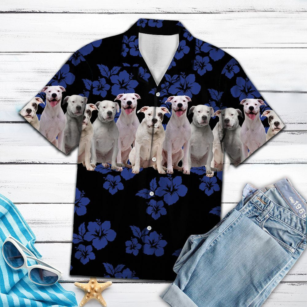 Hibiscus Trópaiceach Dogo Argentino Uathúil Ar Léine Haváí le Patrún Dubh, Bronntanas Léine Haváís, Bronntanas Nollag