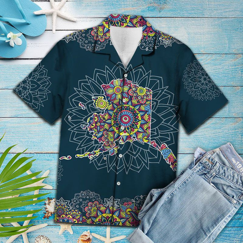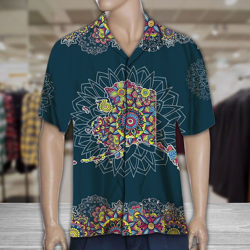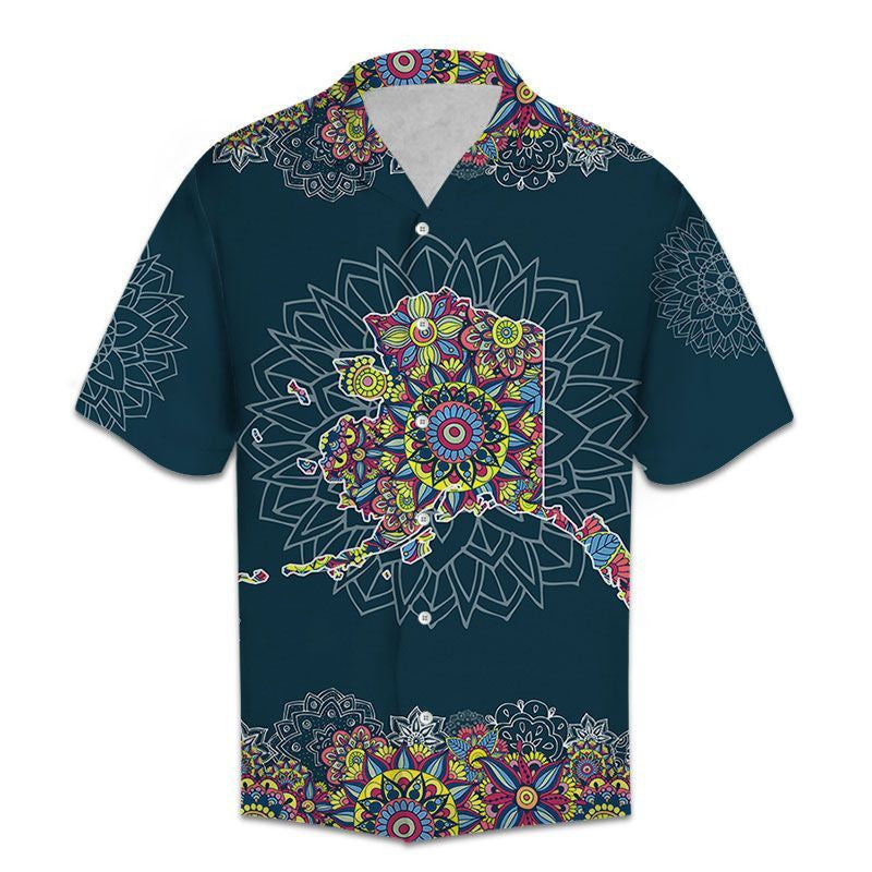 Léarscáil Uathúil As Alasca Mandala Flower Patchwork Pattern Léine Haváís, Bronntanas Léine Haváíais, Bronntanas Nollag