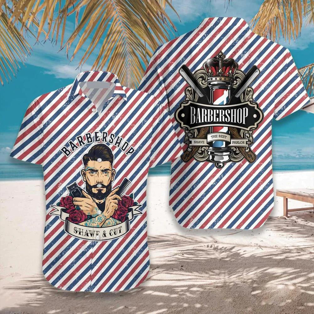 Bearrfaidh Siopa Barber Léine Haváís Stráice Dearg Retro Dearg, Bronntanas Léine Haváíais, Bronntanas Nollag