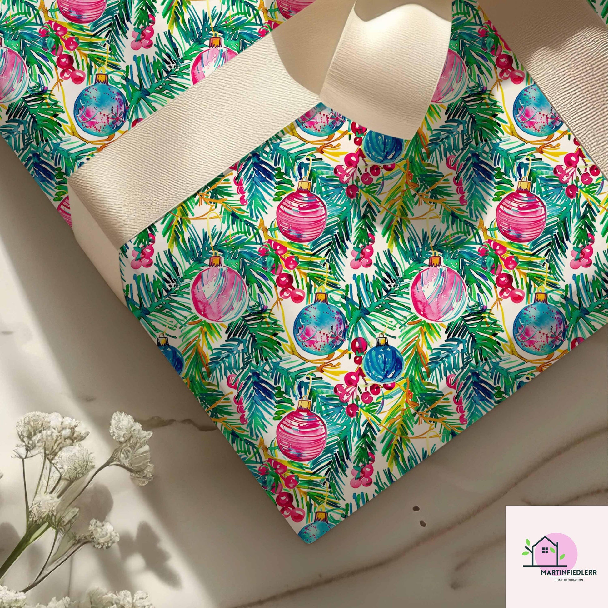 Bauble Christmas Wrapping Paper: Pink & Blue Ornament Festive Gift Wrap