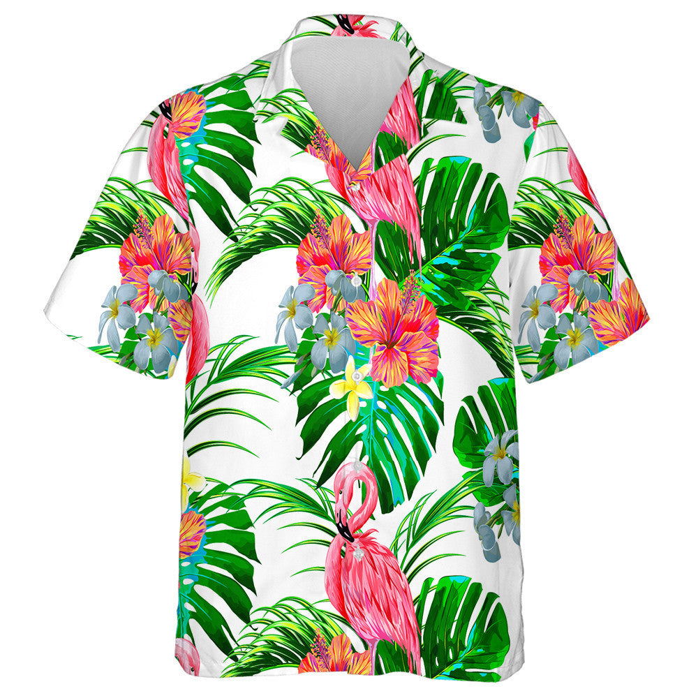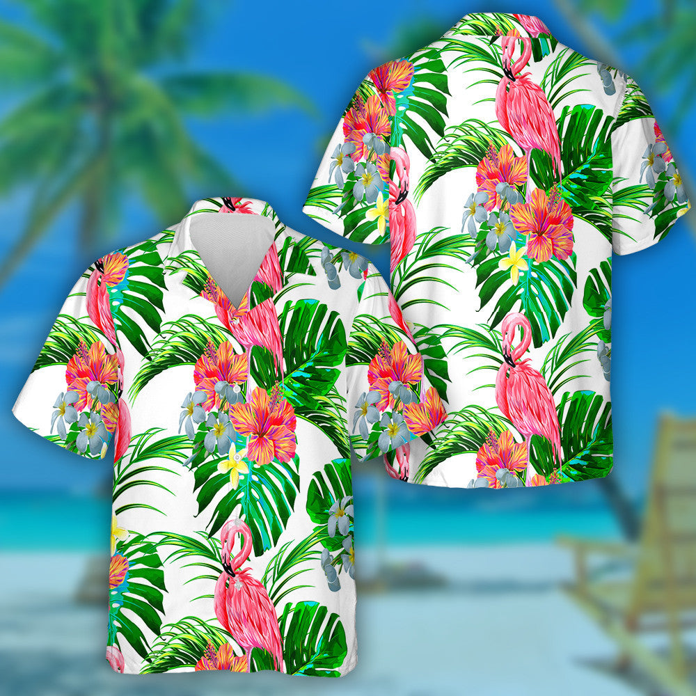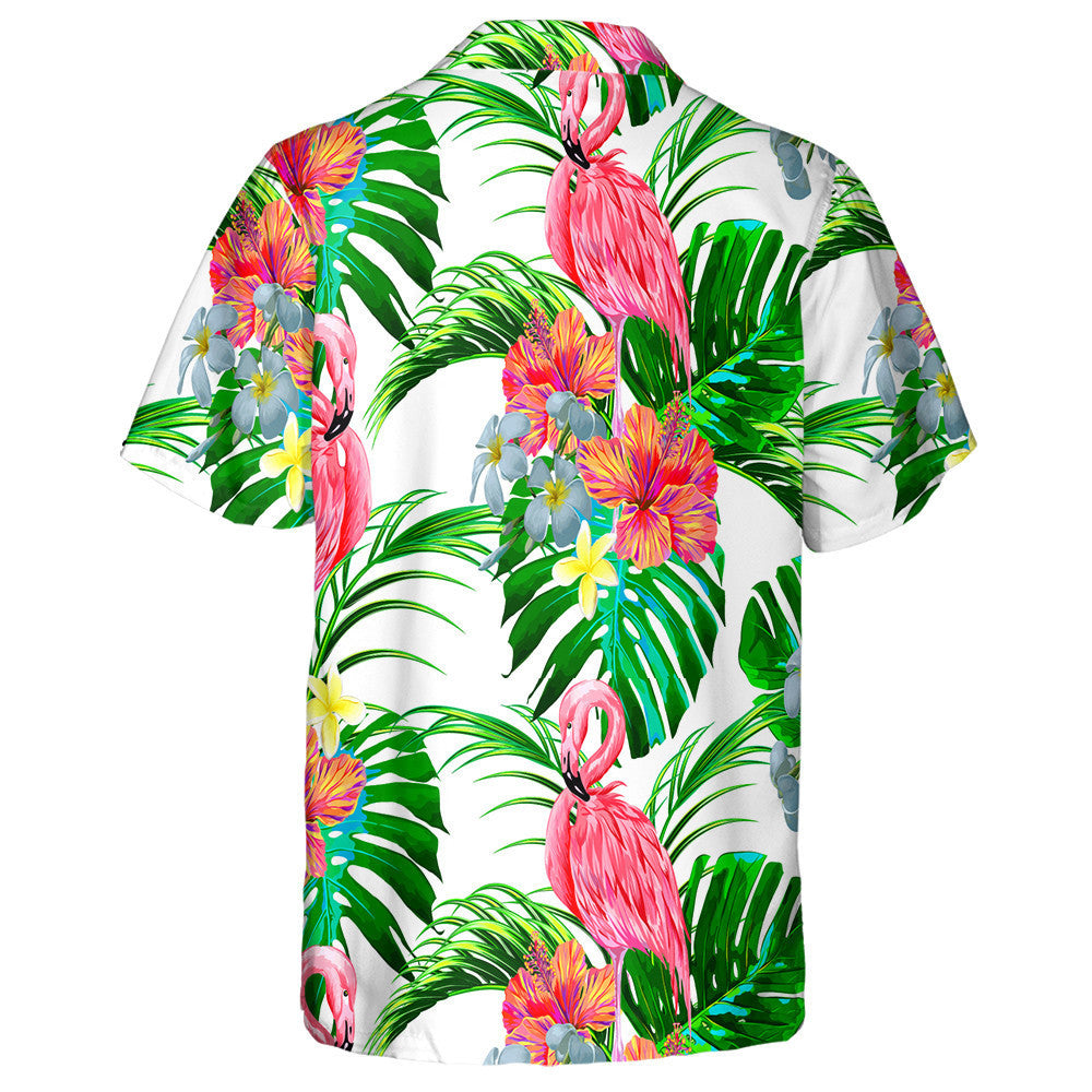 Flamingo Álainn le Duilleoga Coimhthíocha Bláthacha Agus Trópaiceacha Léine Haváís, Bronntanas Léine Haváís, Bronntanas Nollag