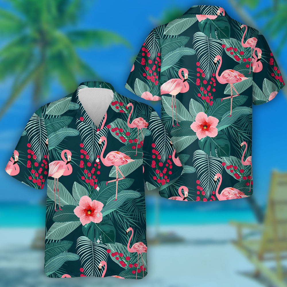 Flamingo Álainn Le pailme Tropcial Agus Banana Fág Léine Haváís, Bronntanas Léine Haváís, Bronntanas Nollag