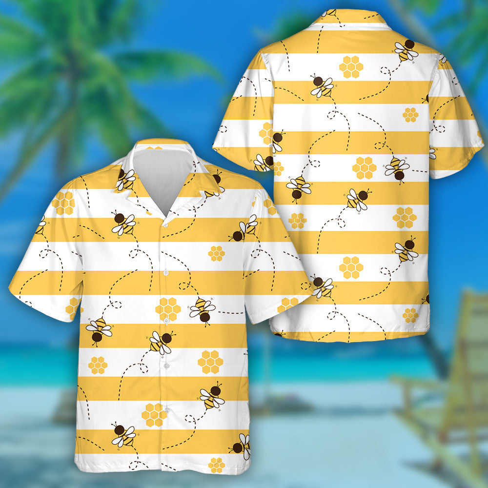 Cartún Bee Agus Cíor Mhíl Ar Léine Haváí Stiallán Buí Bán, Bronntanas Léine Haváí, Bronntanas Nollag