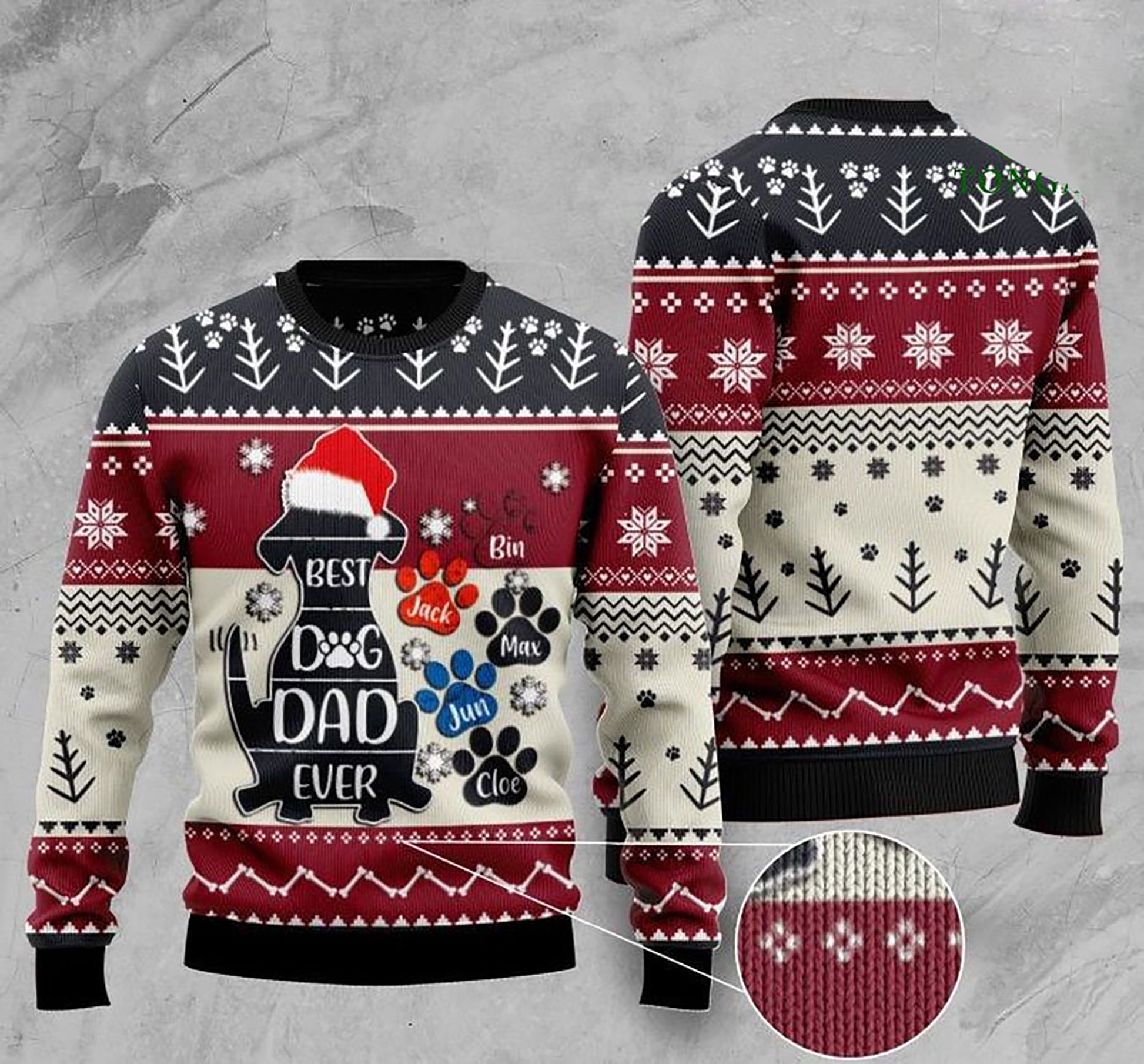 daidí madra is fearr riamh geansaí Nollag priontála iomlán, geansaí gránna Nollag, bronntanas Nollag, bronntanas Nollag 2024
