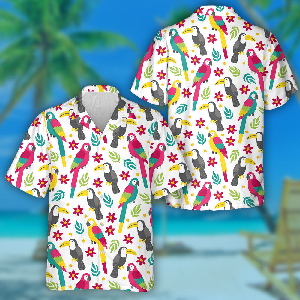 Éan Plumeria Macaw Toucan Duilleoga Trópaiceacha Agus Bláthanna Léine Haváís, Bronntanas Léine Haváís, Bronntanas Nollag