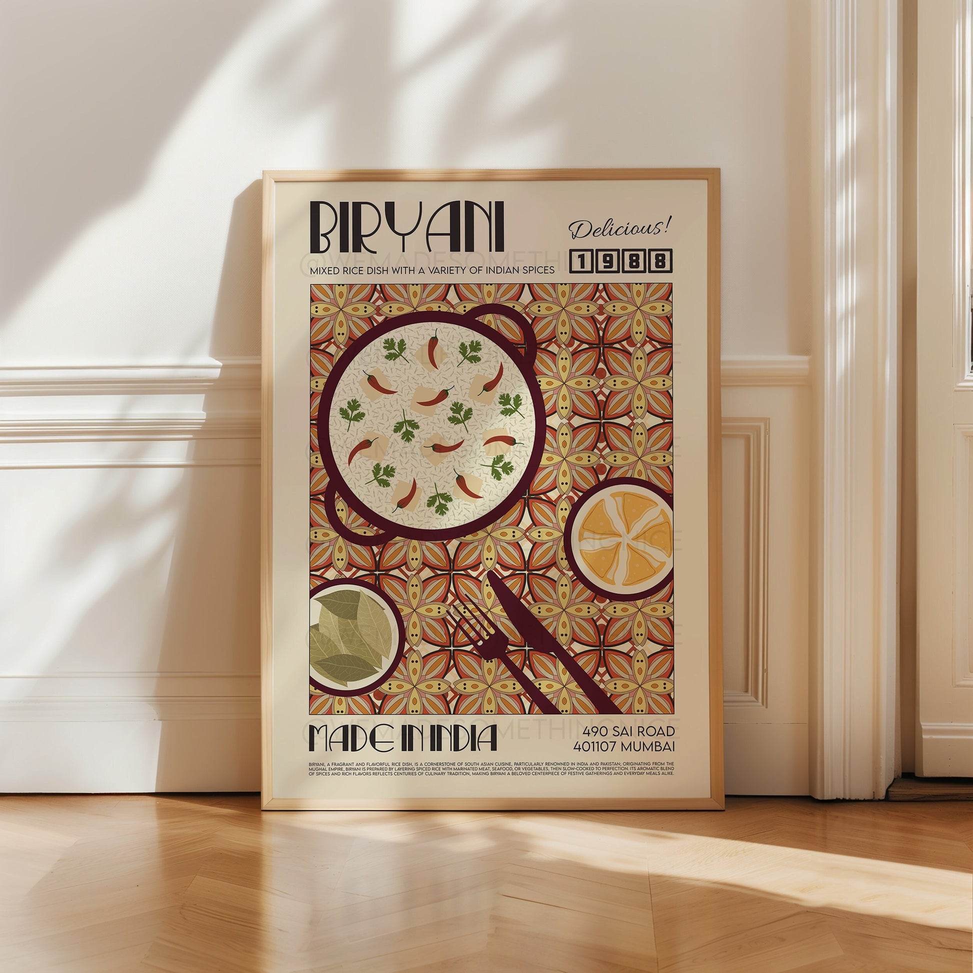 Biryani Poster, Kitchen Poster, Kitchen Print, Food Print, Modern Kitchen Decor, Exhibition Poster Retro Wall Art, India Print, Samosa