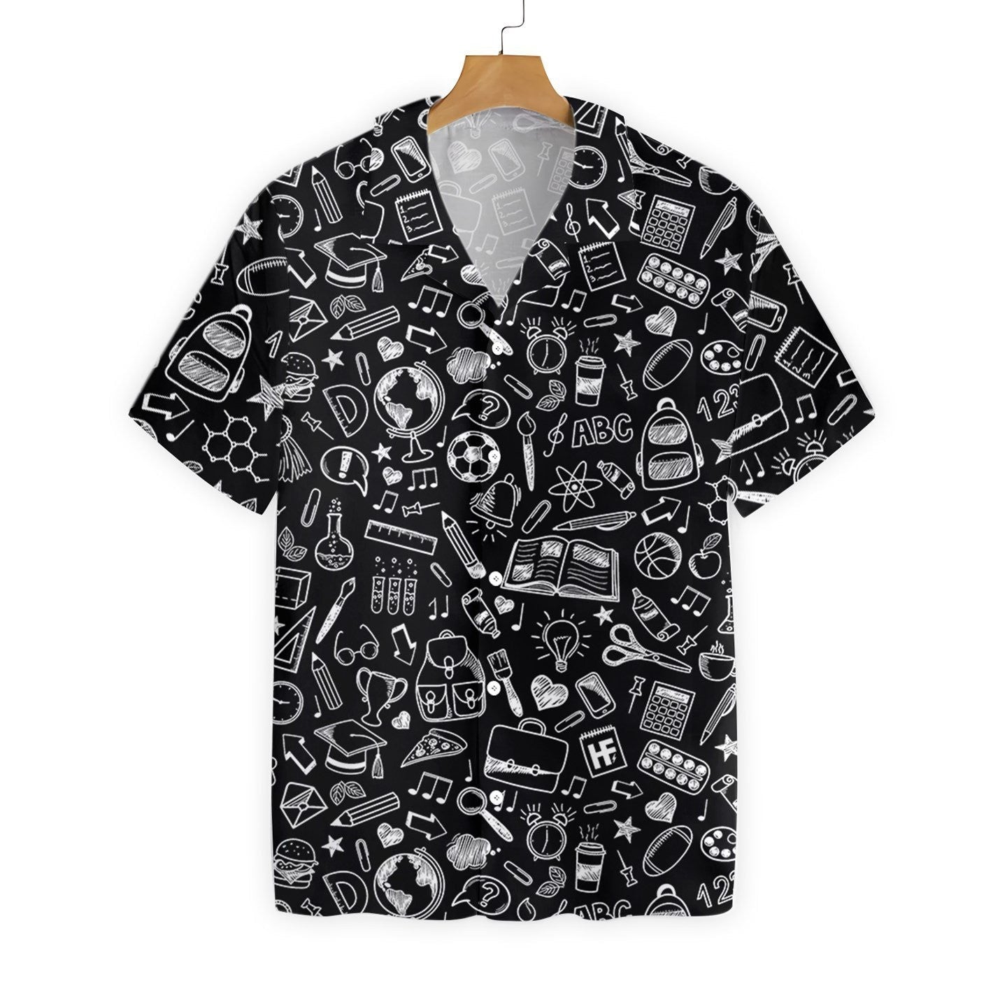 Dubh Agus Bán Scoil Doodle Dearadh Clár Cailc Léine Haváís, Léine Haváís Bronntanas, Nollag Bronntanas