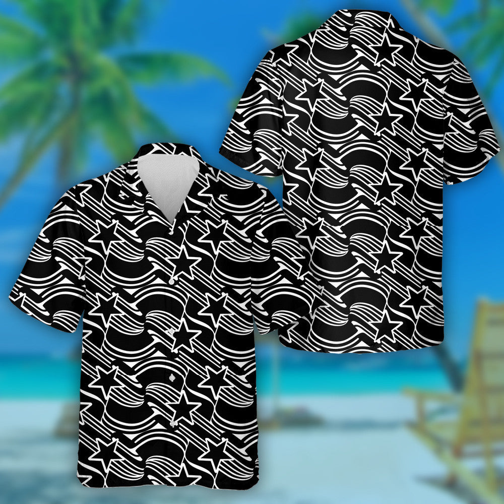 Patrún Imlíne Dubh Agus Bán Striped Agus Réaltaí Léine Haváís, Bronntanas Léine Haváíais, Bronntanas Nollag