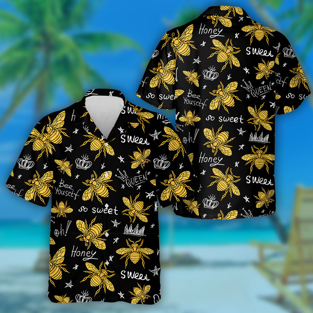Dubh Agus Buí Lámh Tarraingthe Órga Bee Bee Léine Haváís, Léine haváíais Bronntanas, Nollag Bronntanas