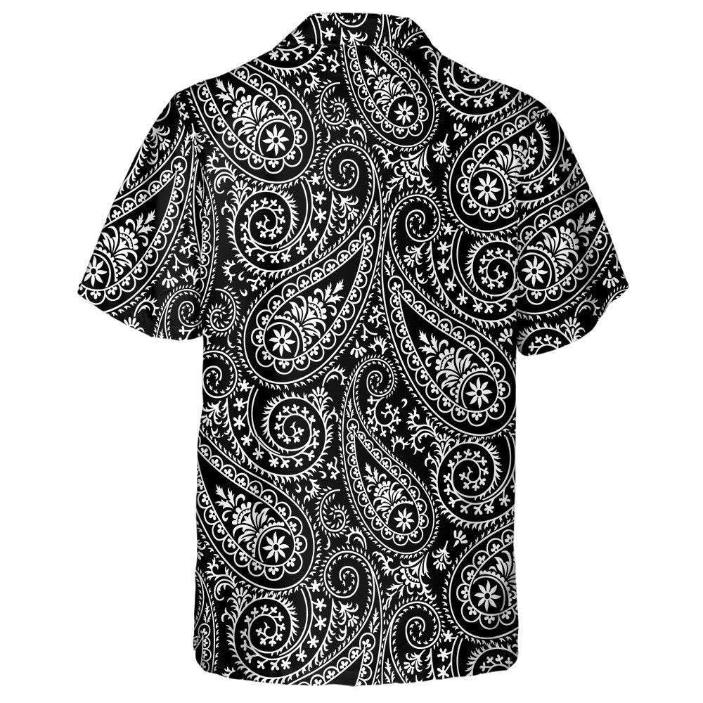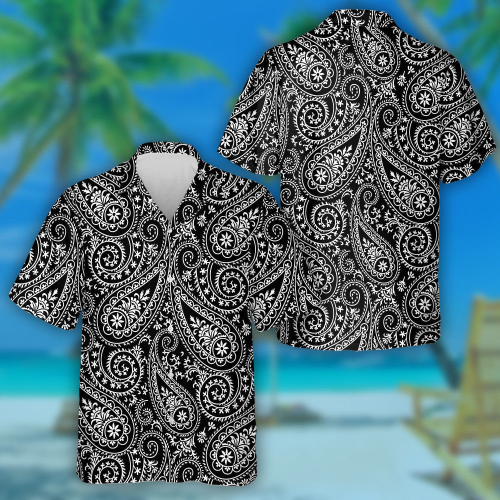 Cúlra Dubh le Patrún Paisley Galánta Lámh Tarraingthe Léine Haváís, Bronntanas Léine Haváís, Bronntanas Nollag