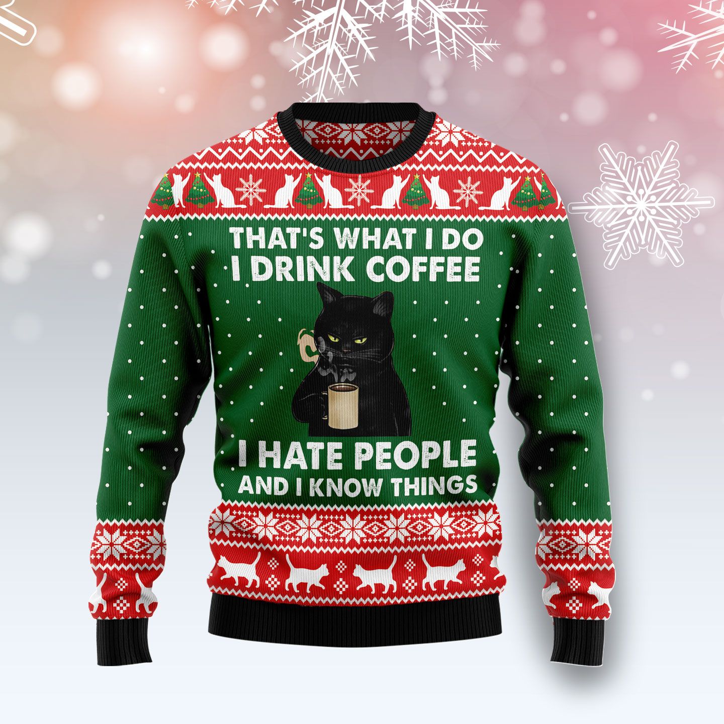 Ól Cat Dubh Caife Geansaí Nollag Gránna, Geansaí Nollag Gránna, Bronntanas Nollag, Bronntanas Nollag 2022