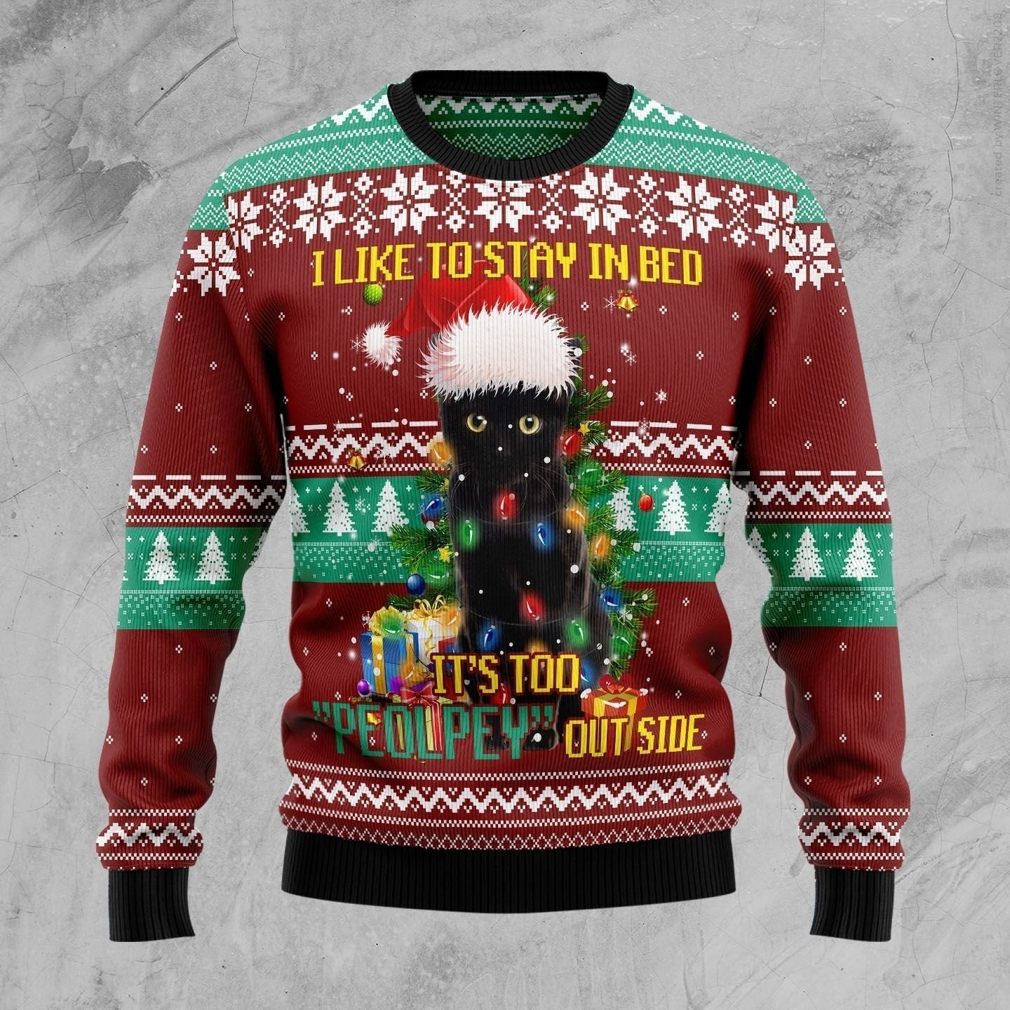 Cosúil le Cat Dubh Fan Sa Leaba Nollag Geansaí Gránna Nollag, Bronntanas Nollag, Bronntanas Nollag 2022