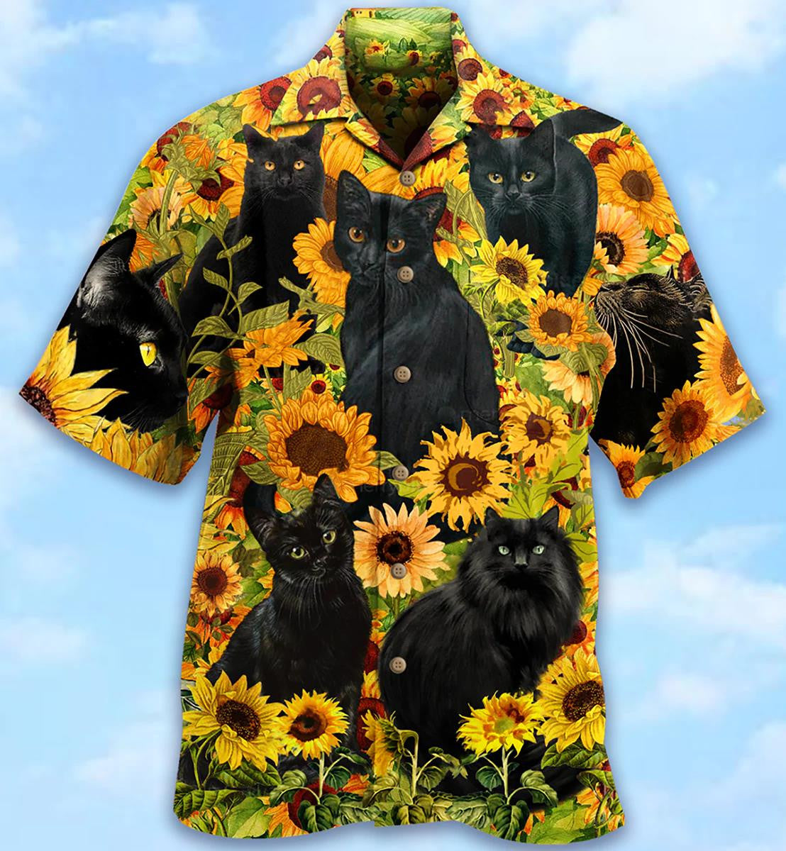 Is breá le Cat Dubh Lus na gréine 3D Léine Clóbhuailte Haváíais, Bronntanas Léine Haváíais, Bronntanas Nollag