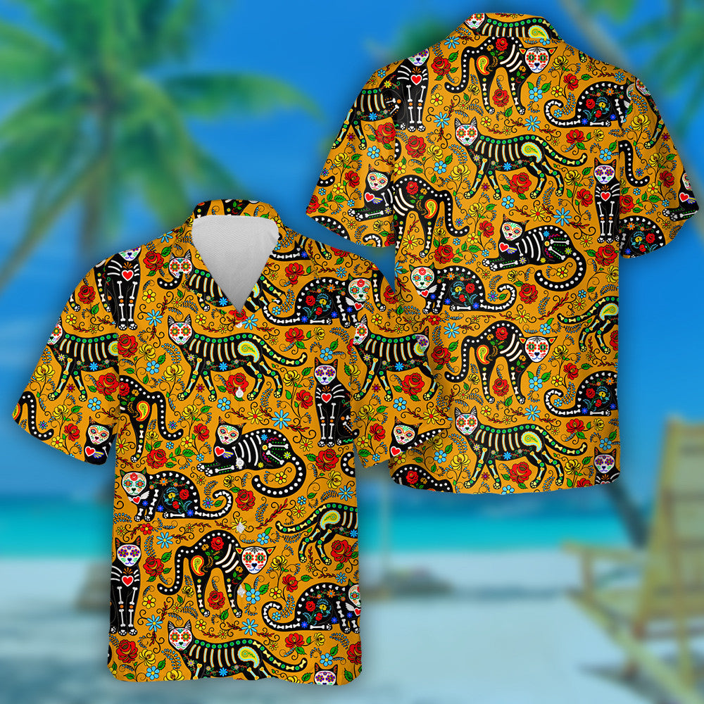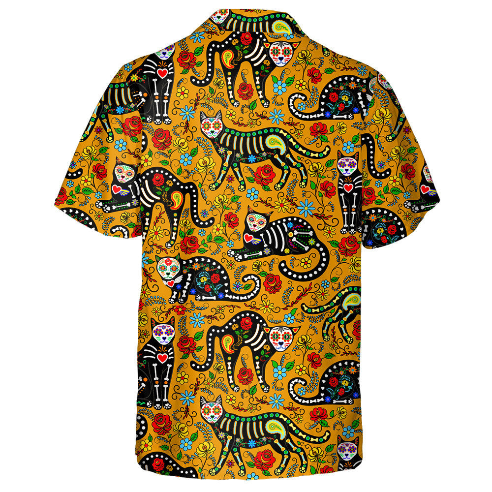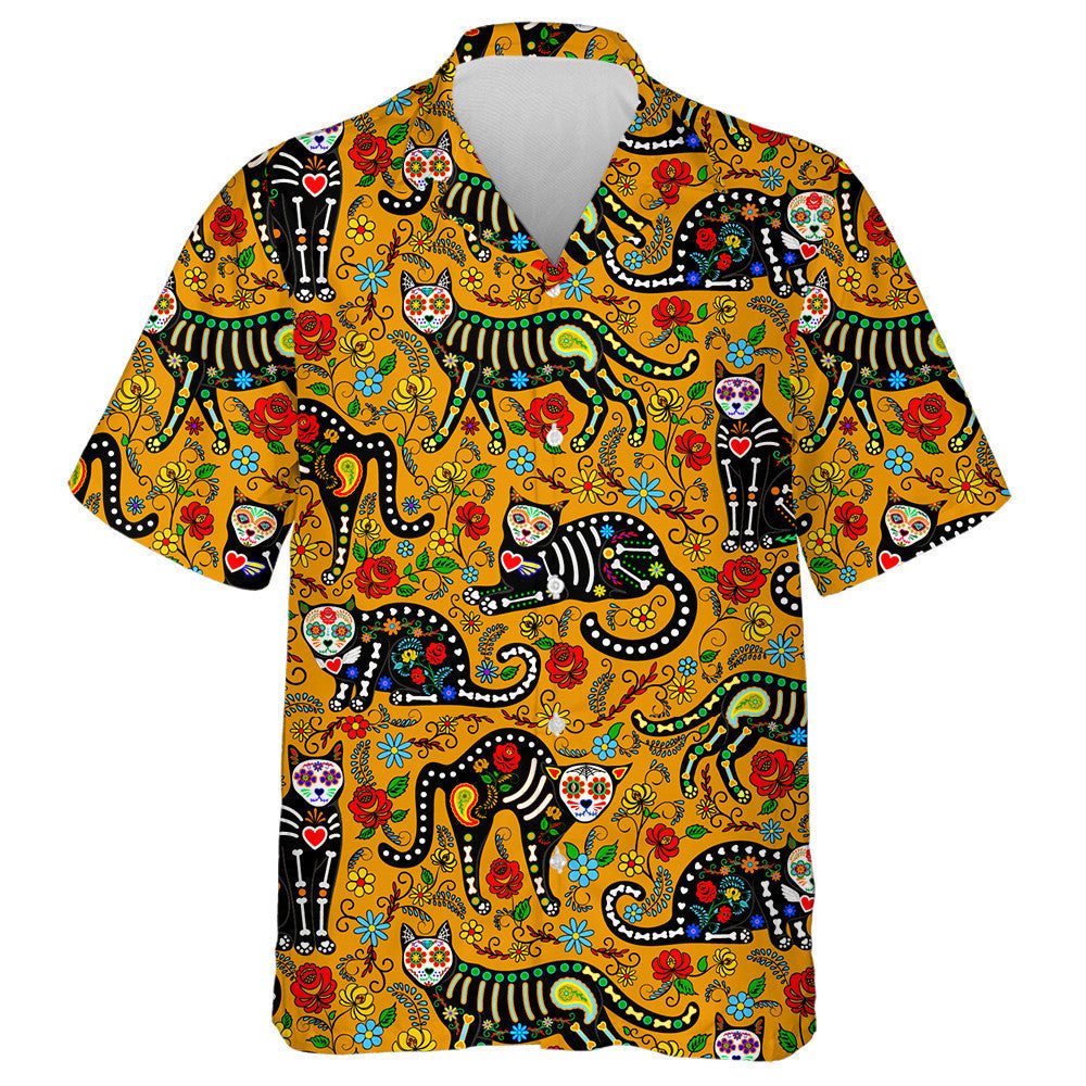 Calavera Siúcra Cloigeann Cat Dubh I Stíl Mheicsiceo Léine Haváís, Bronntanas Léine Haváíais, Bronntanas Nollag
