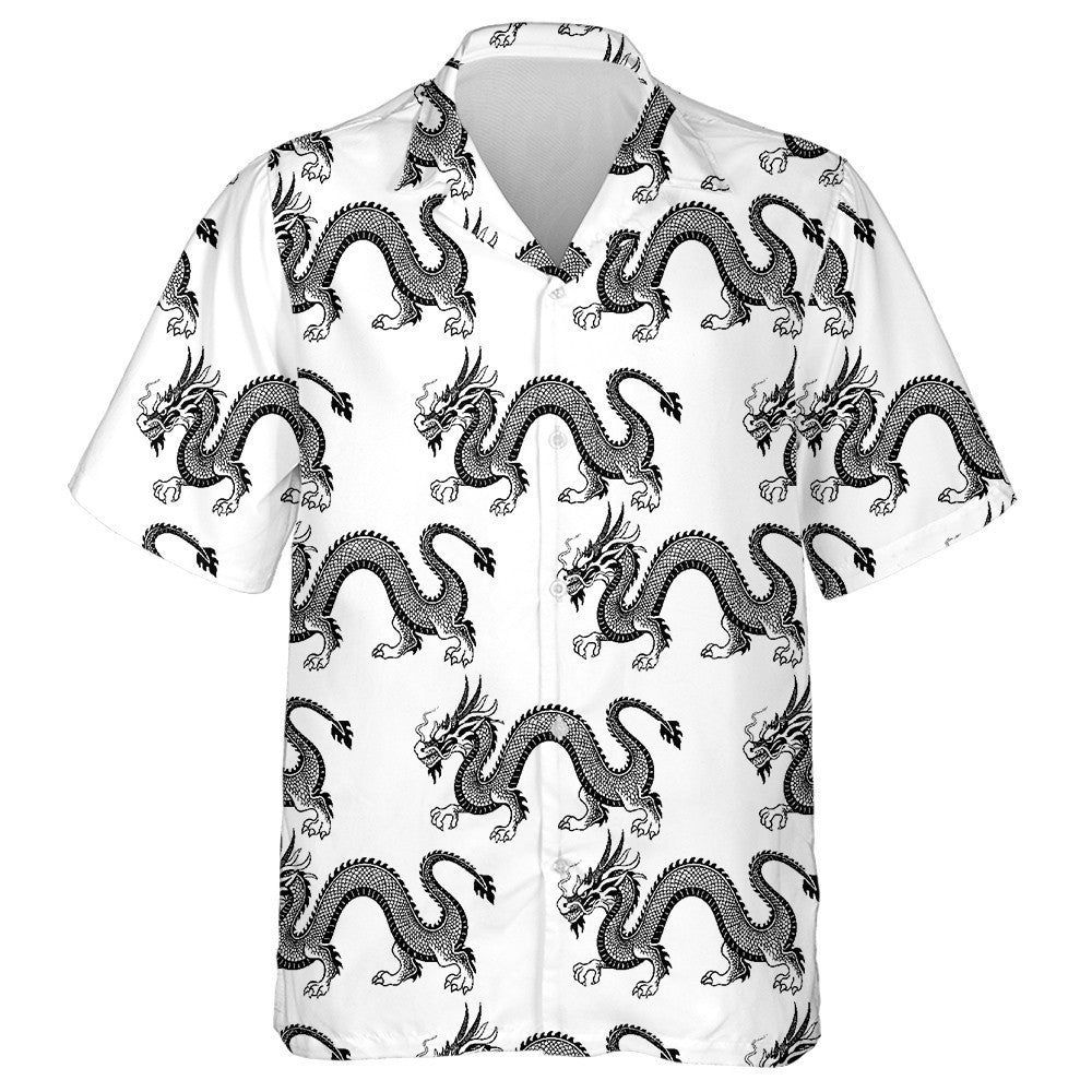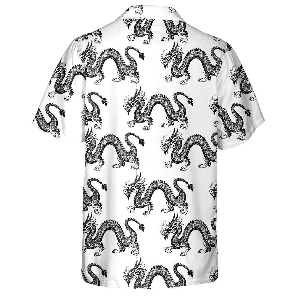 Dragon Dubh I gCiorcal Leithlisiú Ar Chúlra Bán Léine Haváíais, Bronntanas Léine Haváíais, Bronntanas Nollag
