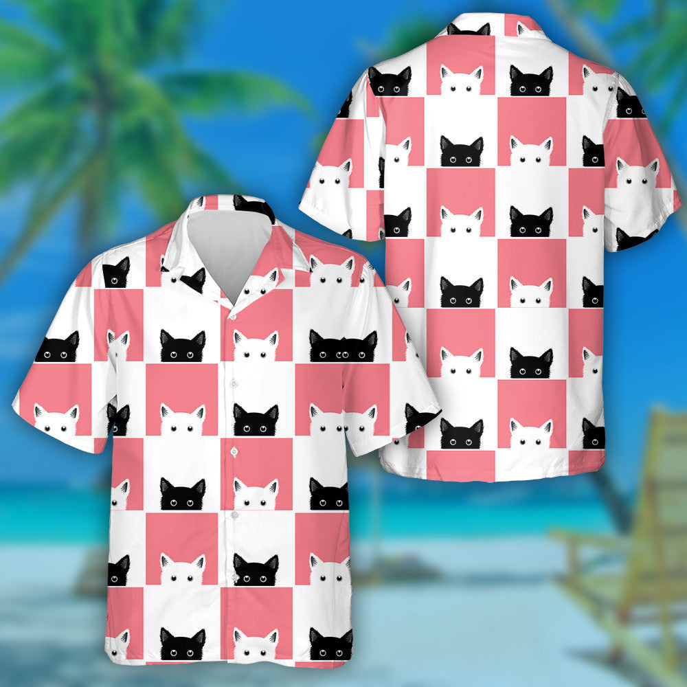 Cúlra Boird Ficheall Cat Dubh Bán Bándearg Léine Haváís, Bronntanas Léine Haváíais, Bronntanas Nollag