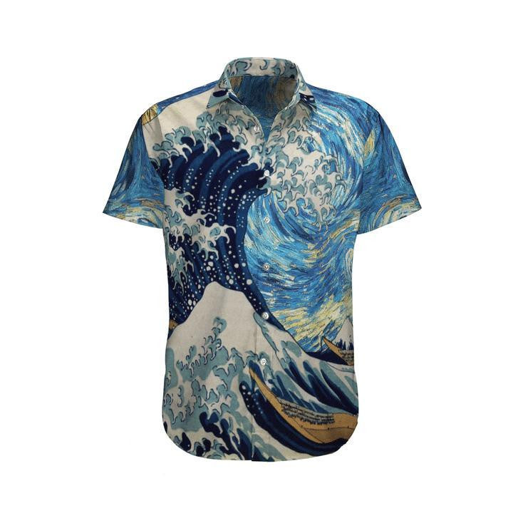 Gorm Agus Bán Aeistéitiúil Seapánach Patrún Ukiyoe Kanagawa Léine Haváís, Bronntanas Léine Haváís, Bronntanas Nollag
