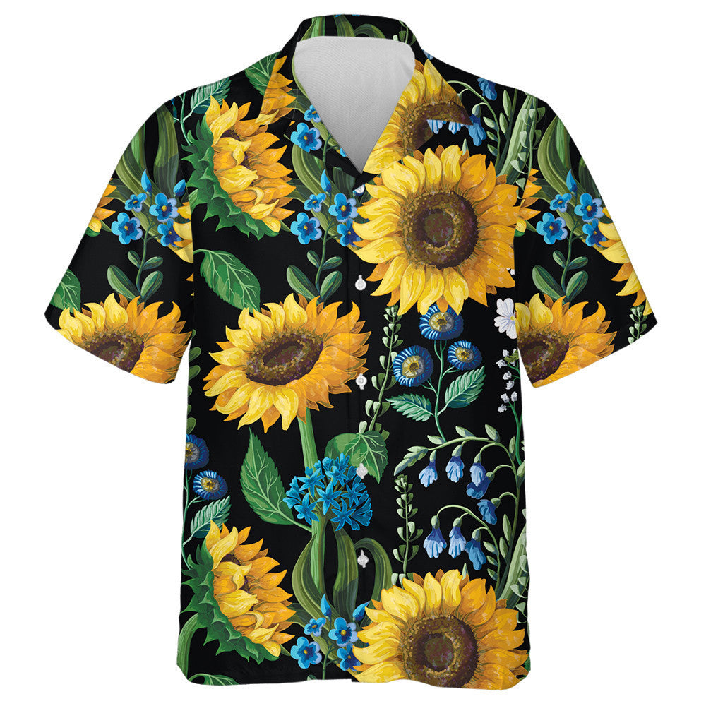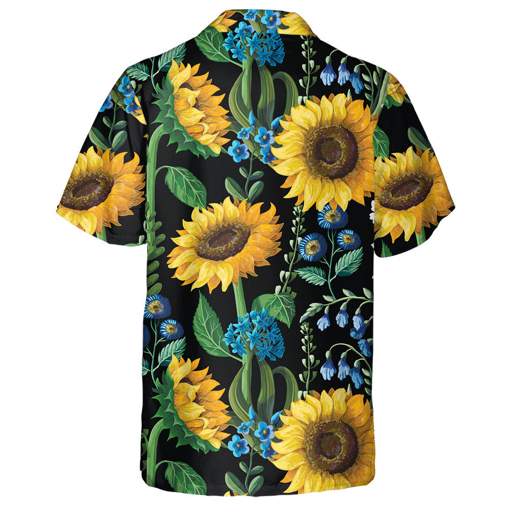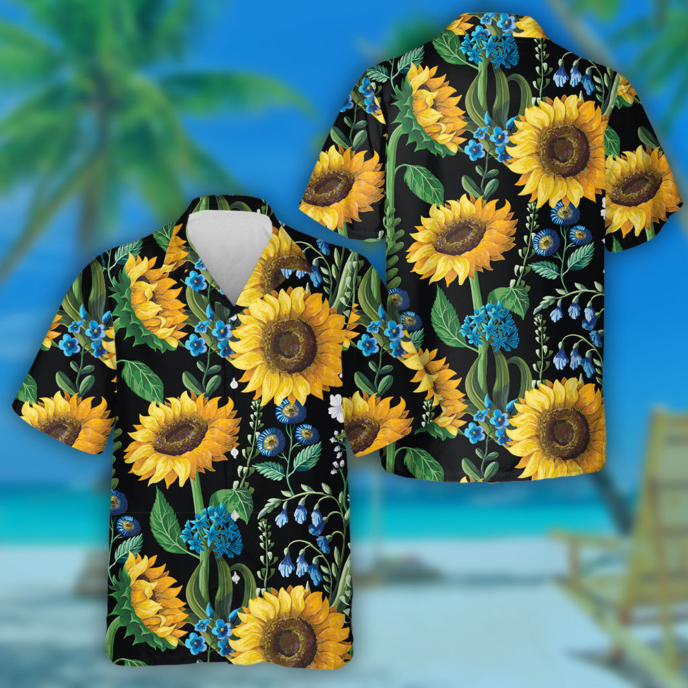 Patrún Hippie Bláthanna Gorma Agus Lus na Gréine ar Chúlra Dubh Léine Haváís, Bronntanas Léine Haváís, Bronntanas Nollag
