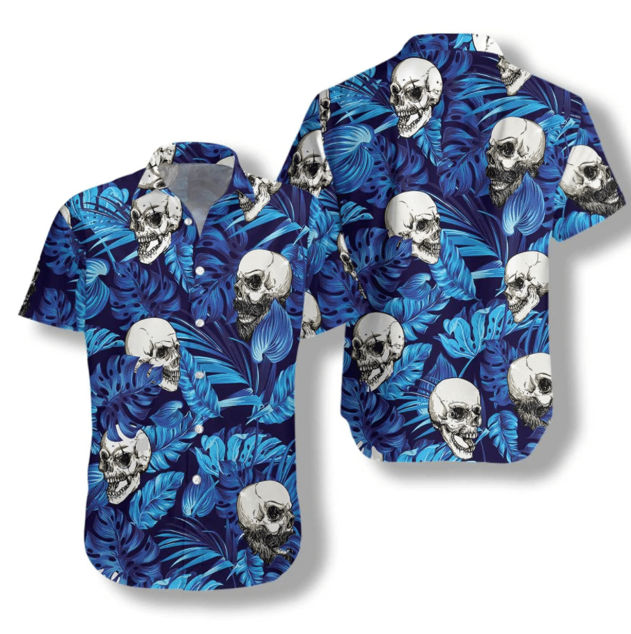 Bláthanna Gorm Trópaiceacha Samhraidh Agus Patrún Skull Léine Haváís, Bronntanas Léine Haváís, Bronntanas Nollag