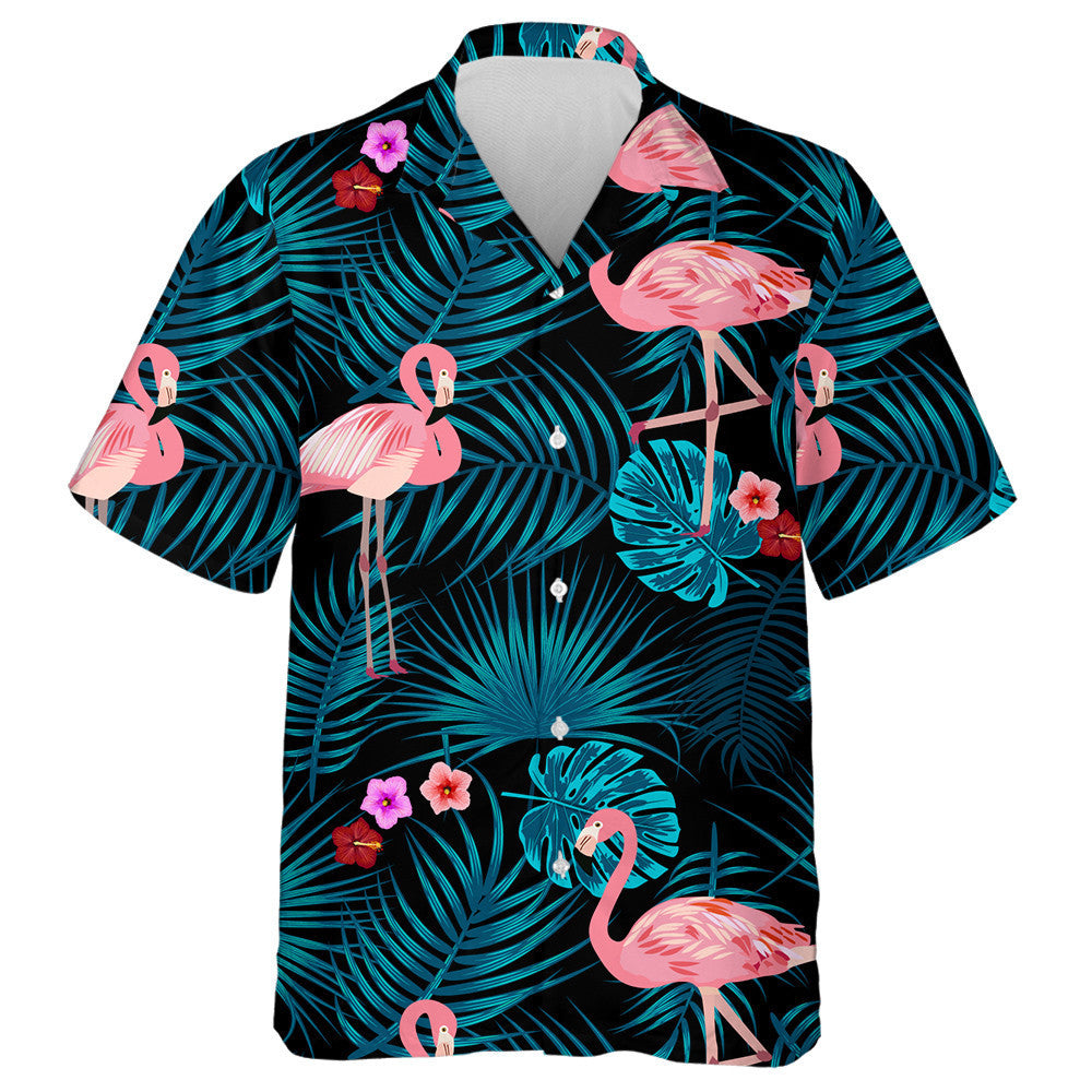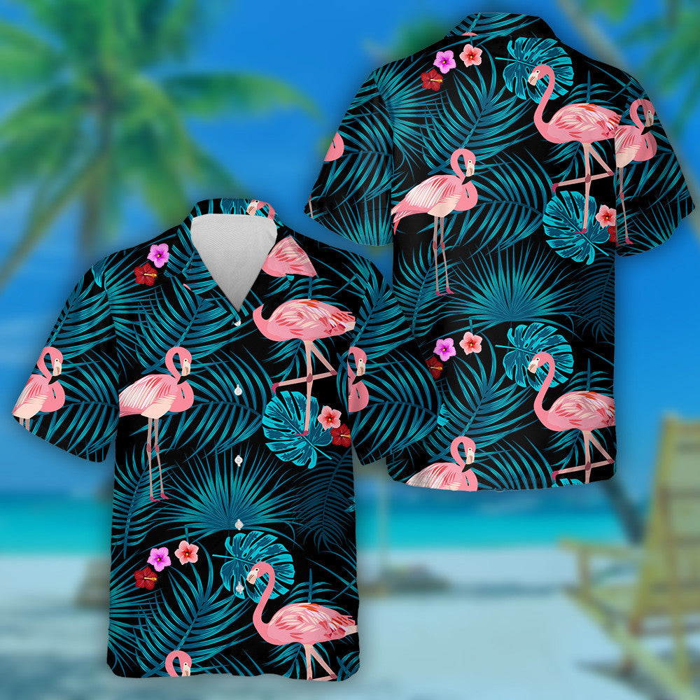 Duilleoga Gorma Trópaiceacha Flamingo Agus Bláthanna Léine haváíais, haváís don bhronntanas